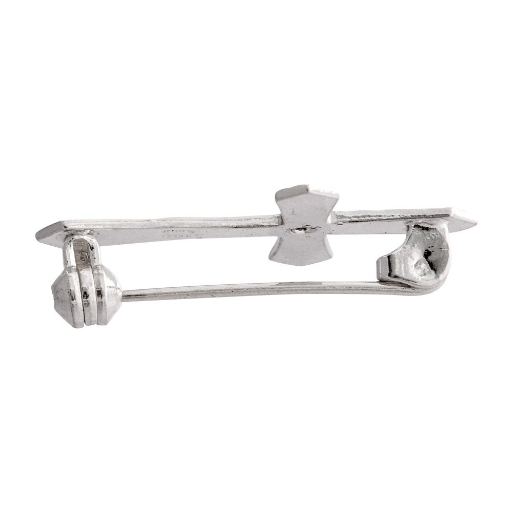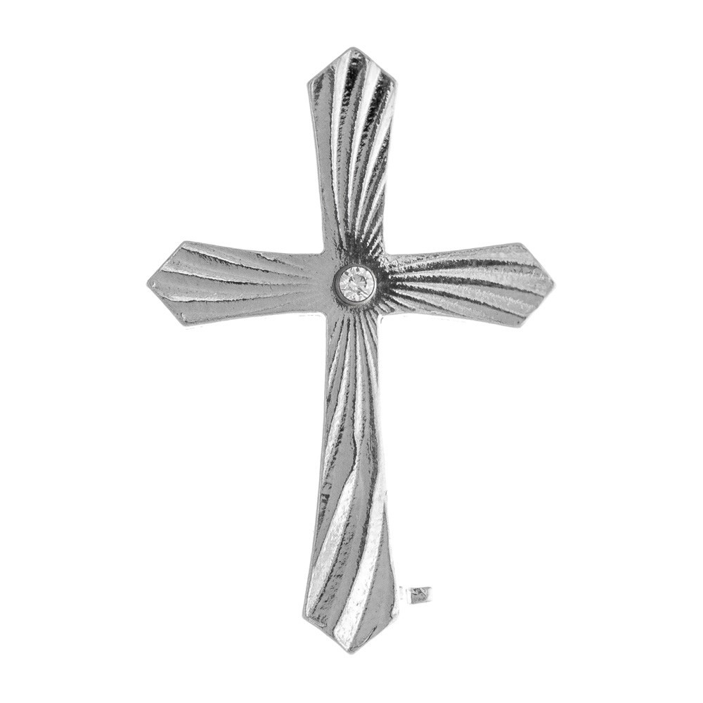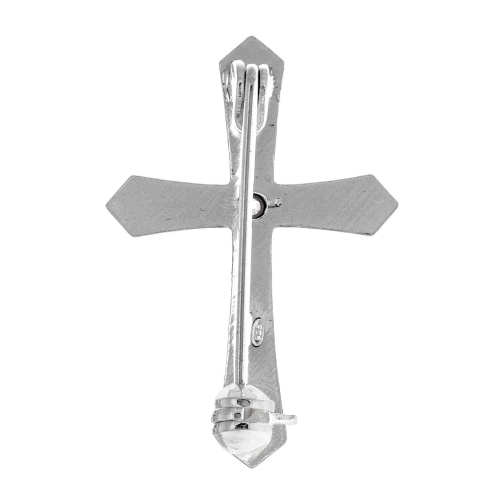 This cross is striped and made of 925 silver. It is equipped with a pin and enriched by a lovely zircon. Made by an Italian company. The cross is 2.5 cm tall and 1.8 cm wide.