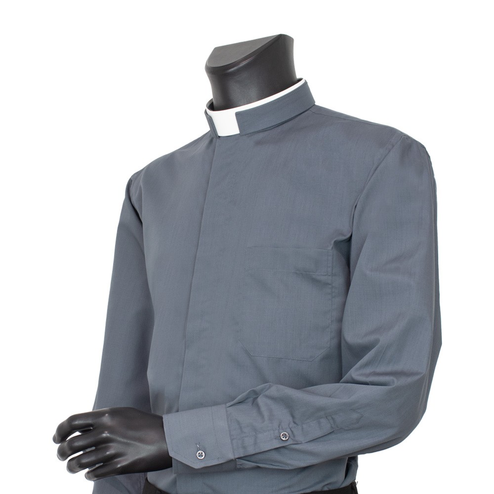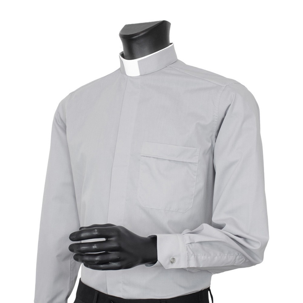 Clerical shirt with Roman collar, made of polyester and cotton blend.