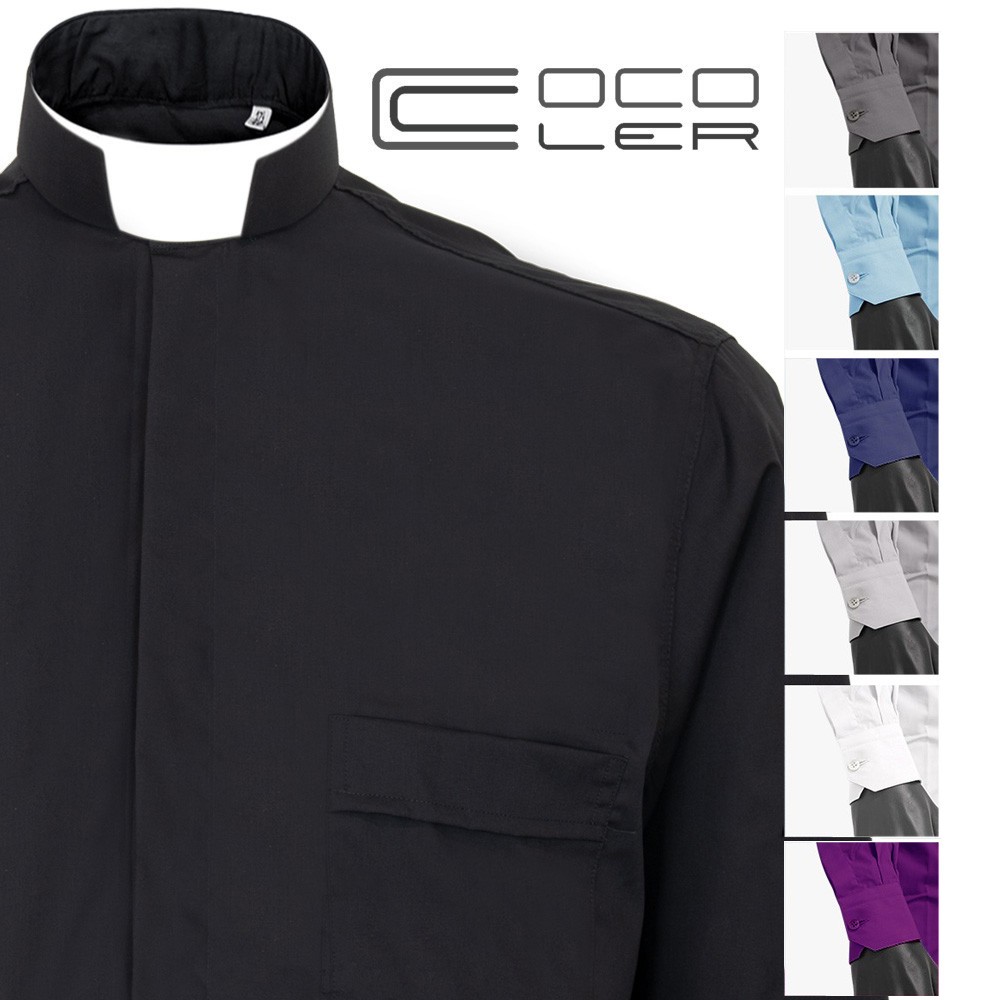 Clergyman shirt in pure cotton with Roman collar, excellent fit.