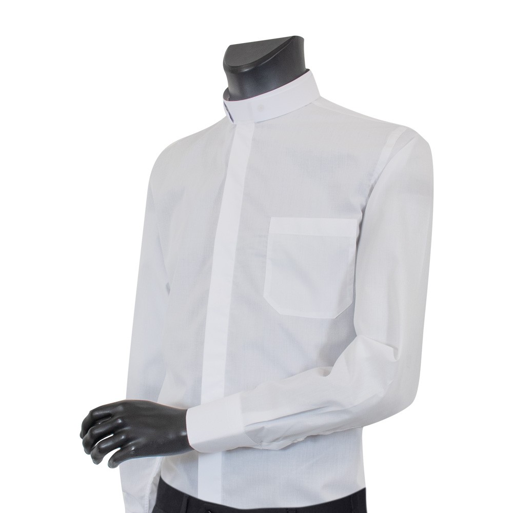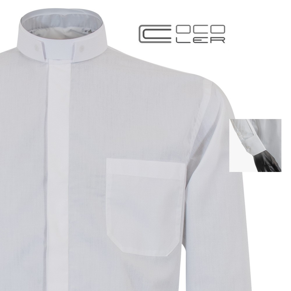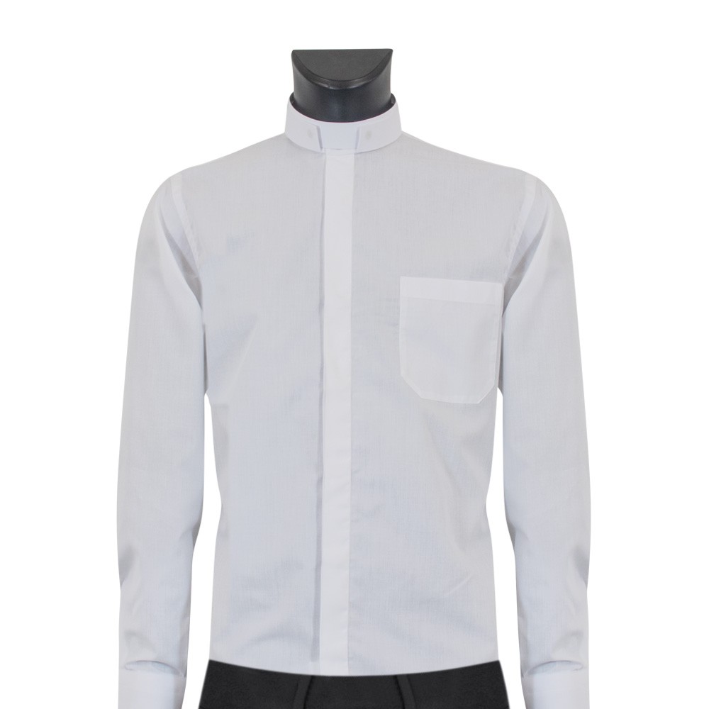 Shirt in pure cotton with clergy collar and long sleeves.