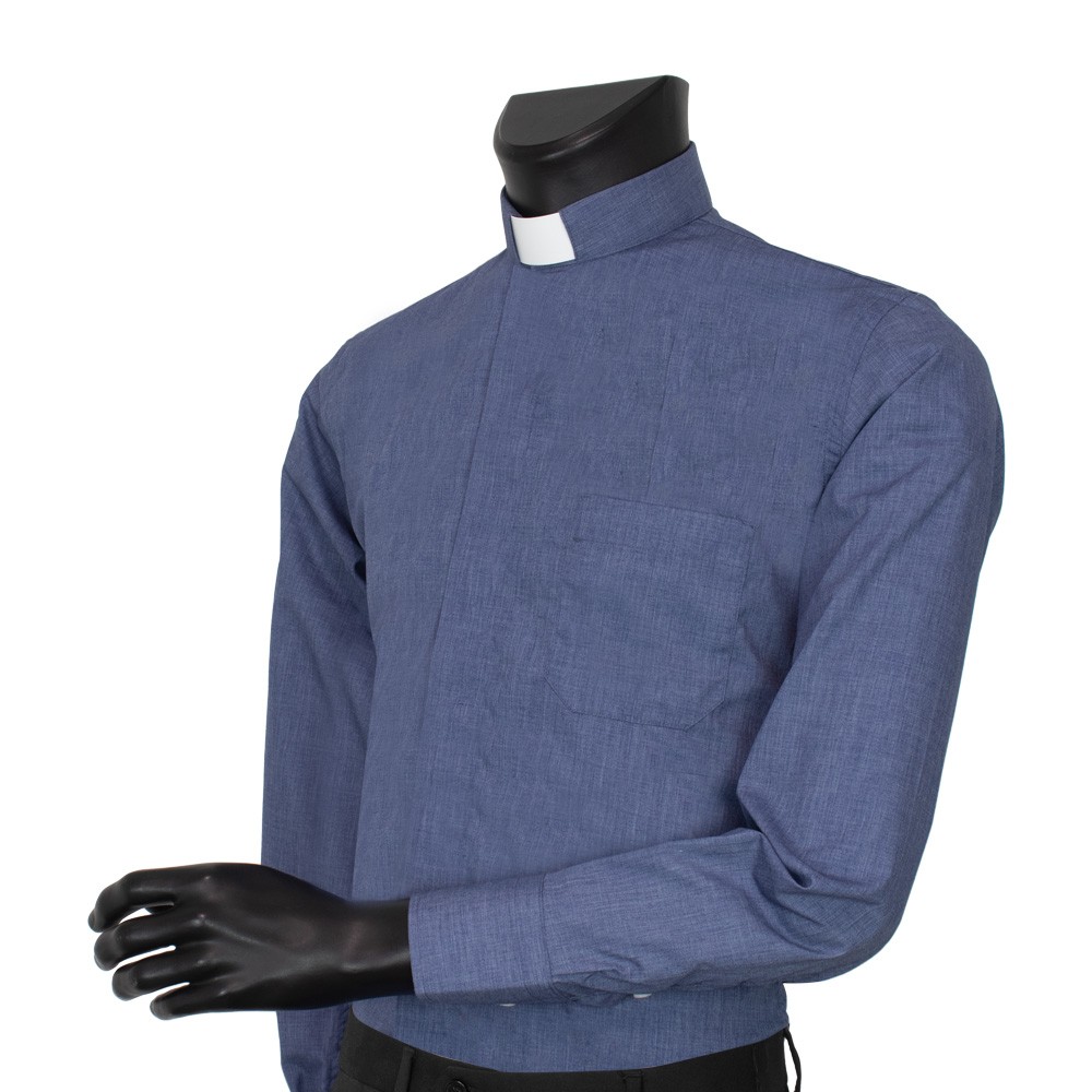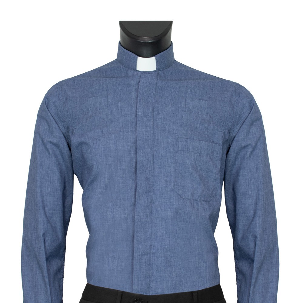 Shirts for priests and deacons with clergy collar, denim solid color.