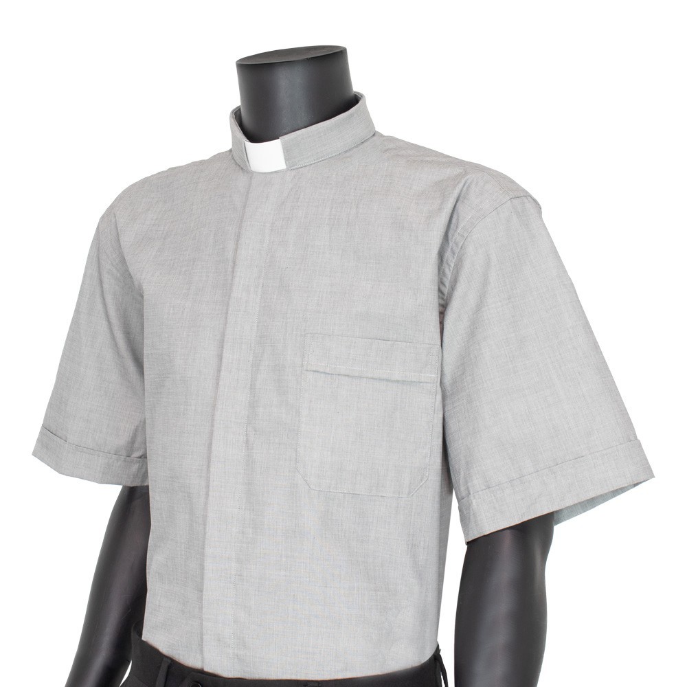 Short-sleeved clergyman shirt with fil-a-fil weaving.