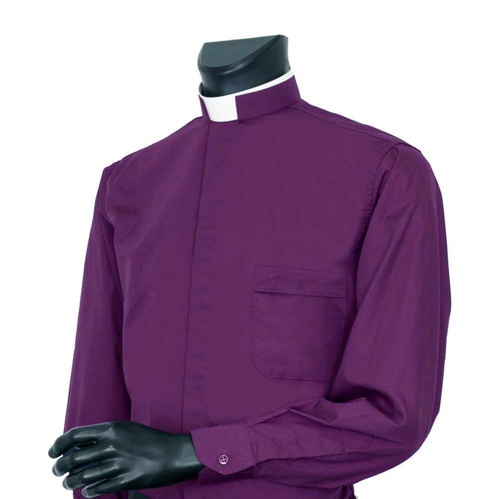 Purple clergy shirt with classic semi-rigid Roman collar, ideal for priests. Made of a fabric blend of 65% polyester and 35% cotton, it is fresh, lightweight, and breathable, offering excellent fit and fine details.