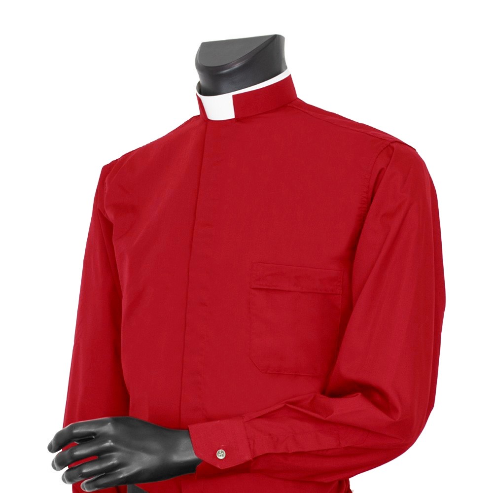 Elegant red clergy shirt with classic semi-rigid Roman collar.