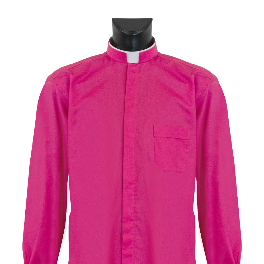 Clergy shirt for priests with semi-rigid Roman collar, long sleeves, and hidden buttons. Lightweight and breathable fabric, made in Italy.