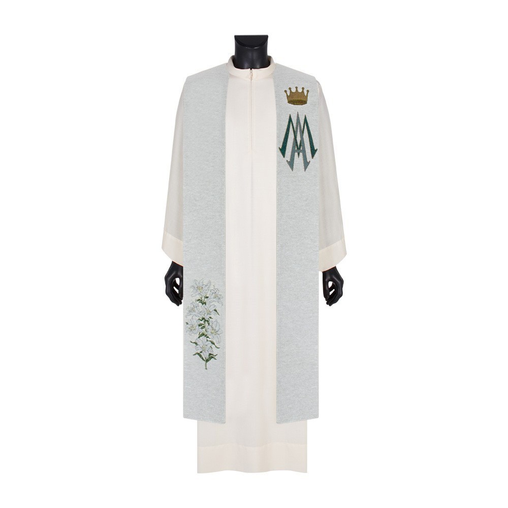 Priest stole with Marian symbol.