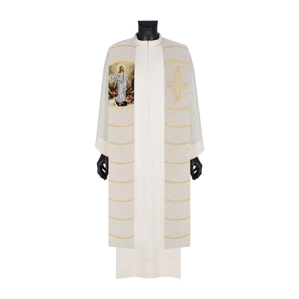 Liturgical stole with Risen Jesus embroidery made using the loom technique.