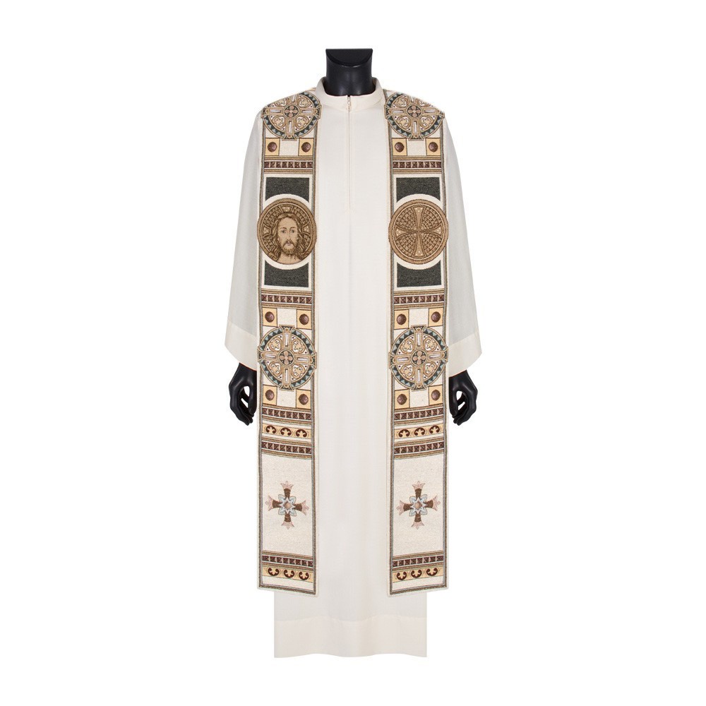 Priestly stole with custom machine embroidery, made of fresh and breathable polyester fabric.