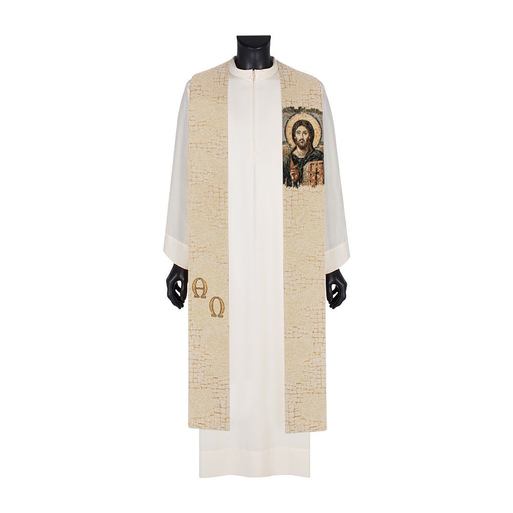 Priest stole with embroidery of Christ Pantocrator, Alpha and Omega symbols.