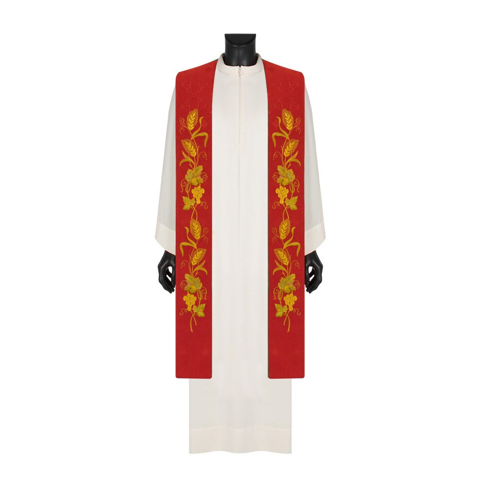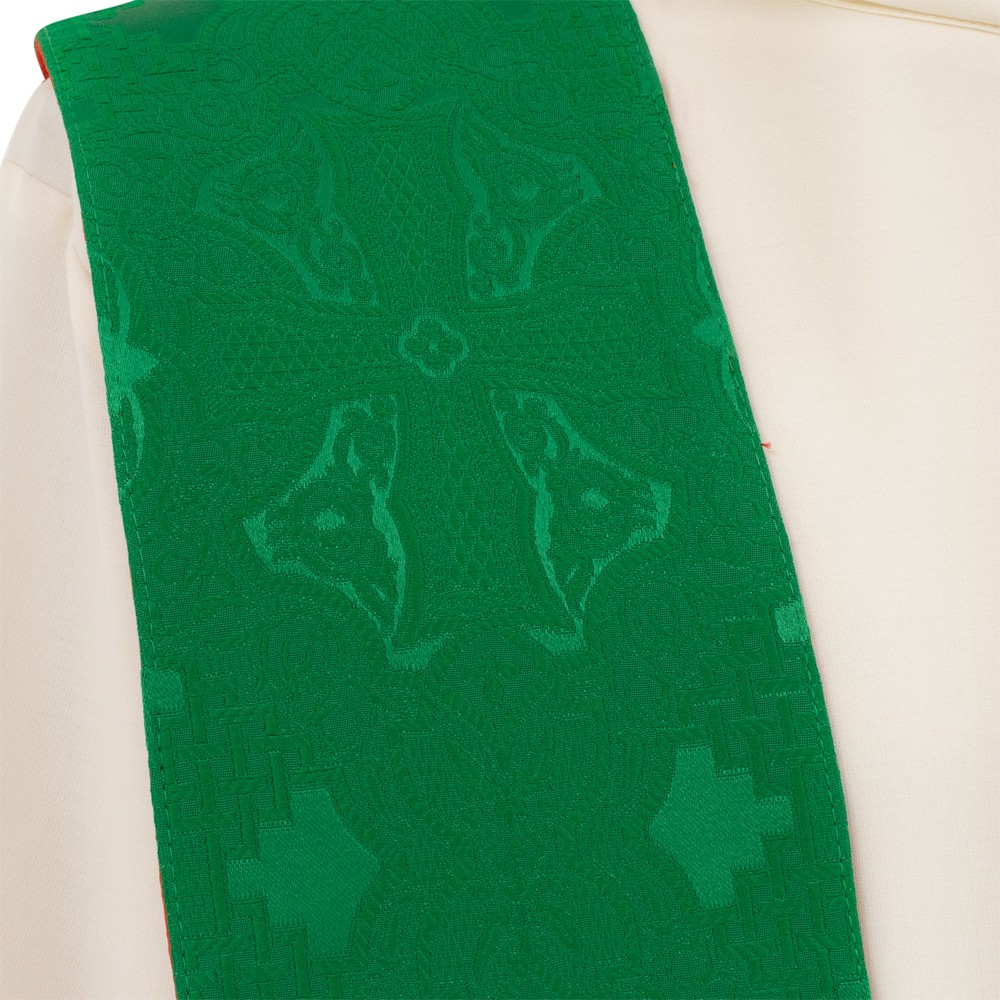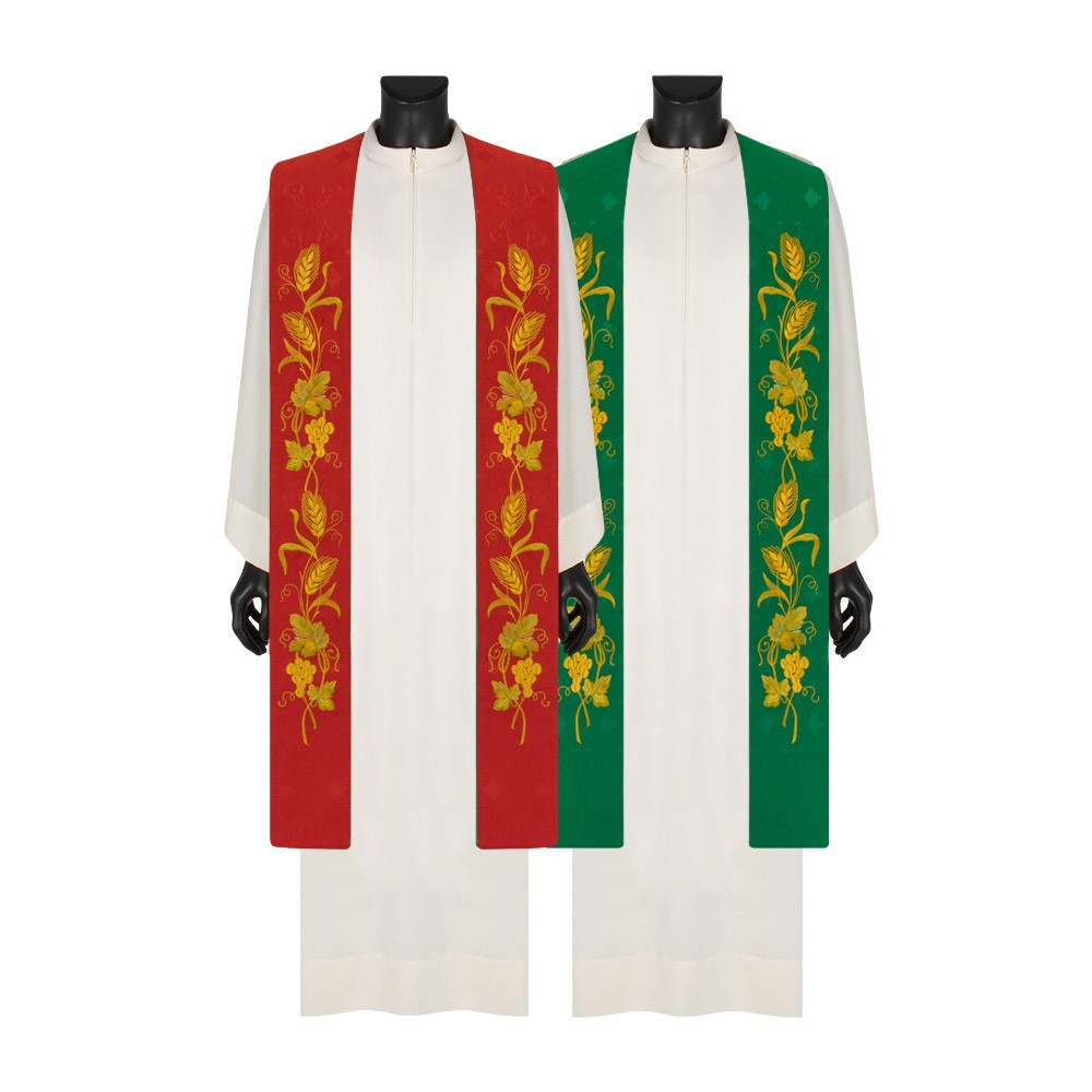 Double-sided priest stole of green and red color with rich machine embroidery.