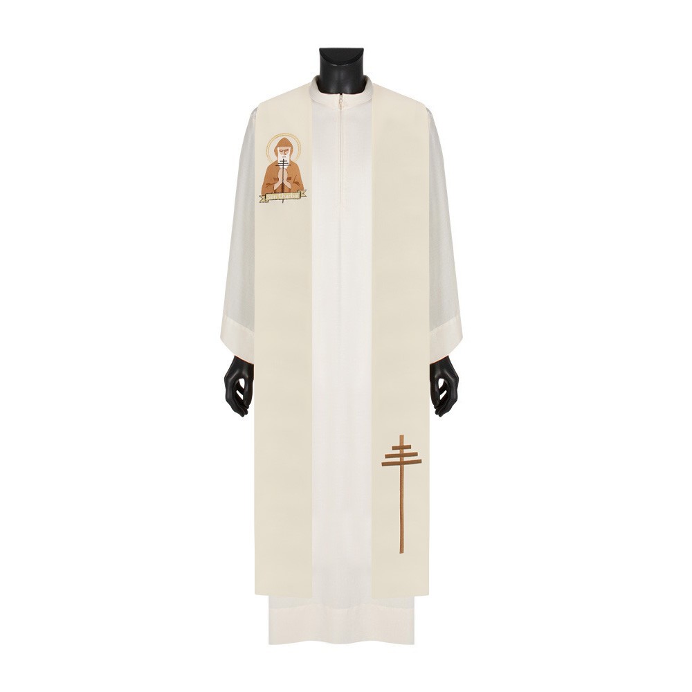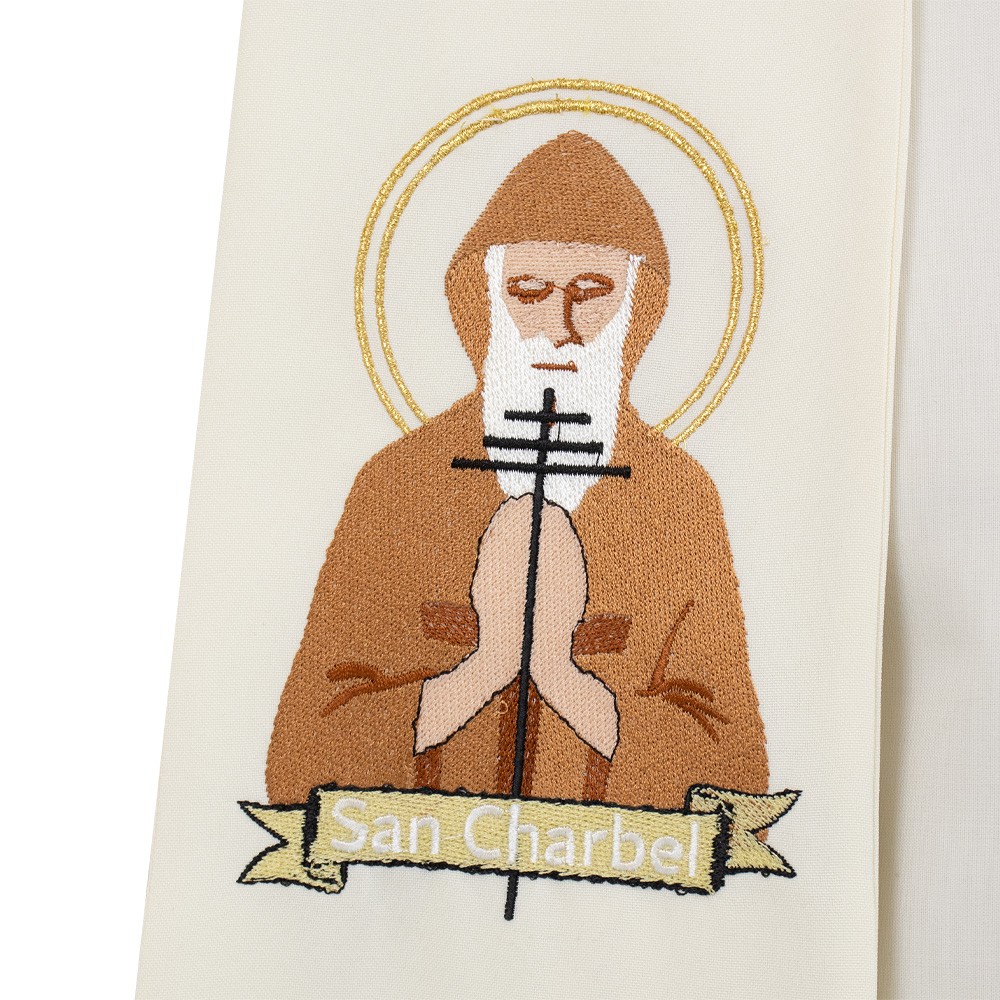 Priest stole of ivory color with embroidered image of SAINT CHARBEL.