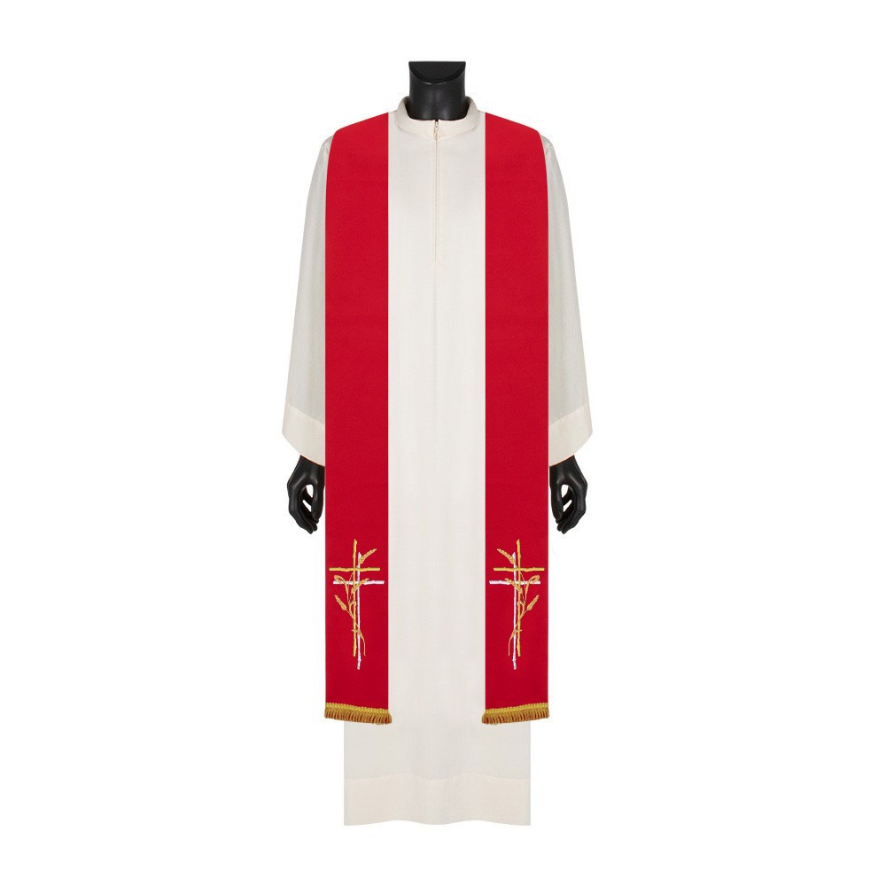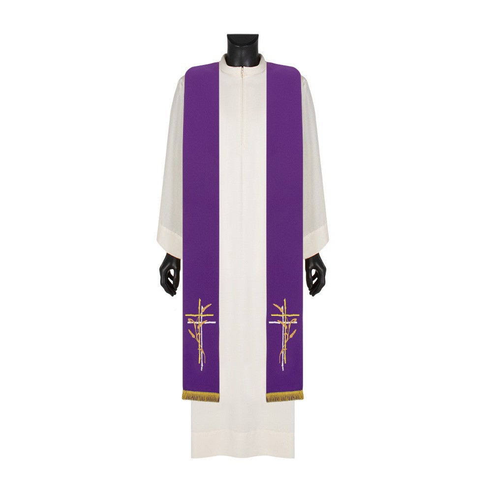 This stole features a stylized cross embroidery surrounded by ears of wheat on both sides and is enriched with golden fringes.