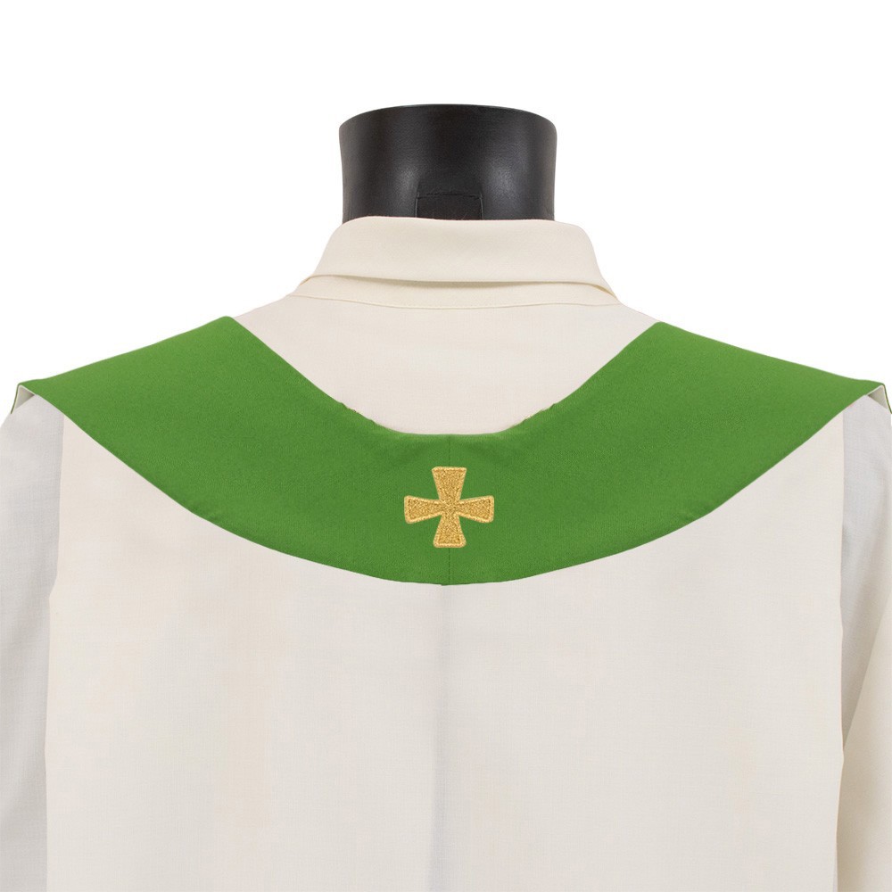 Double-sided liturgical stole of ivory and green color, with embroidery and golden fringes.