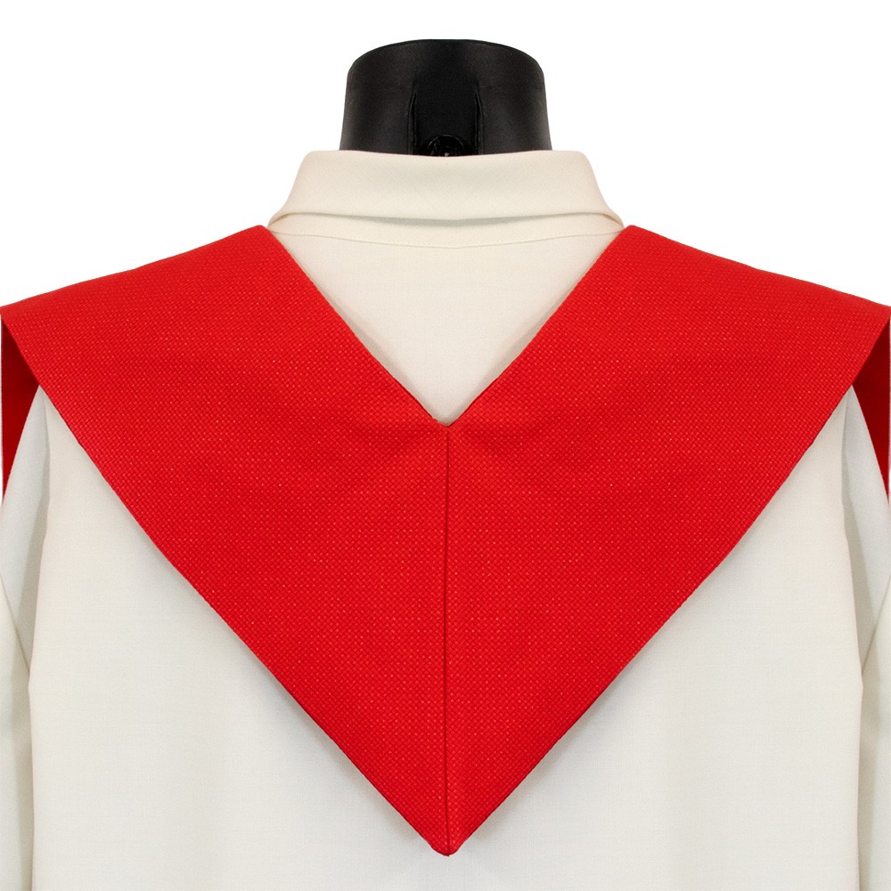 Liturgical vestment in cool polyester fabric.