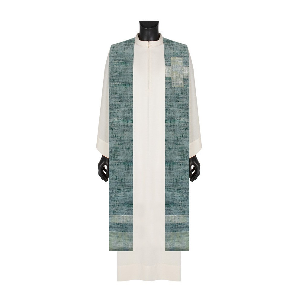 This green priest stole is made from a fine linen and silk blend, offering a lightweight and breathable product, perfect for any liturgical celebration, even during the summer season.