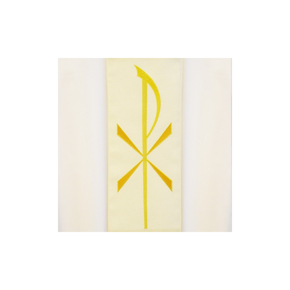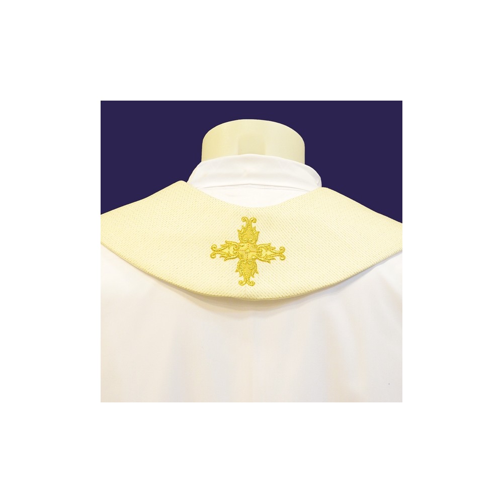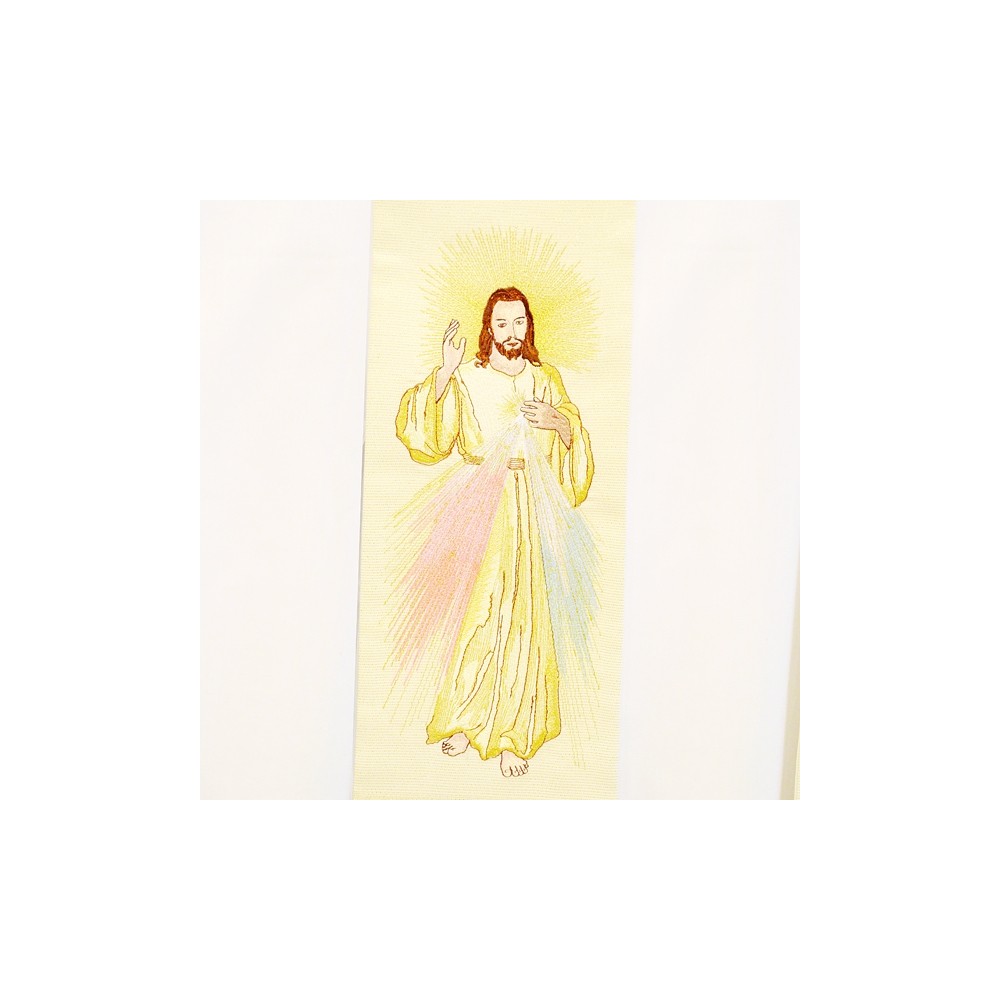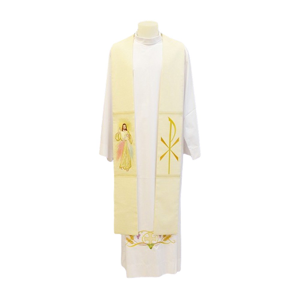 Stola rigata oro in misto Lana/Lurex, con ricamo da un lato di Gesù Misericordioso e dall'altro una Croce PX. Il tessuto è elegante e resistente, realizzato da una sartoria italiana.