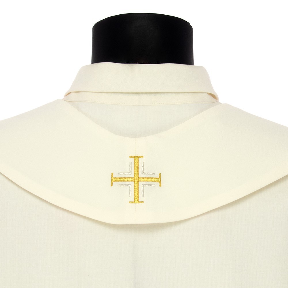 Priestly stole with custom machine embroidery, made of fresh and breathable polyester fabric.
