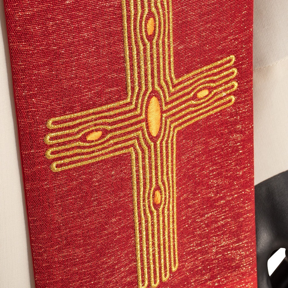 Red priest stole entirely crafted on a HANDLOOM, ensuring Italian artisanal quality and tradition.