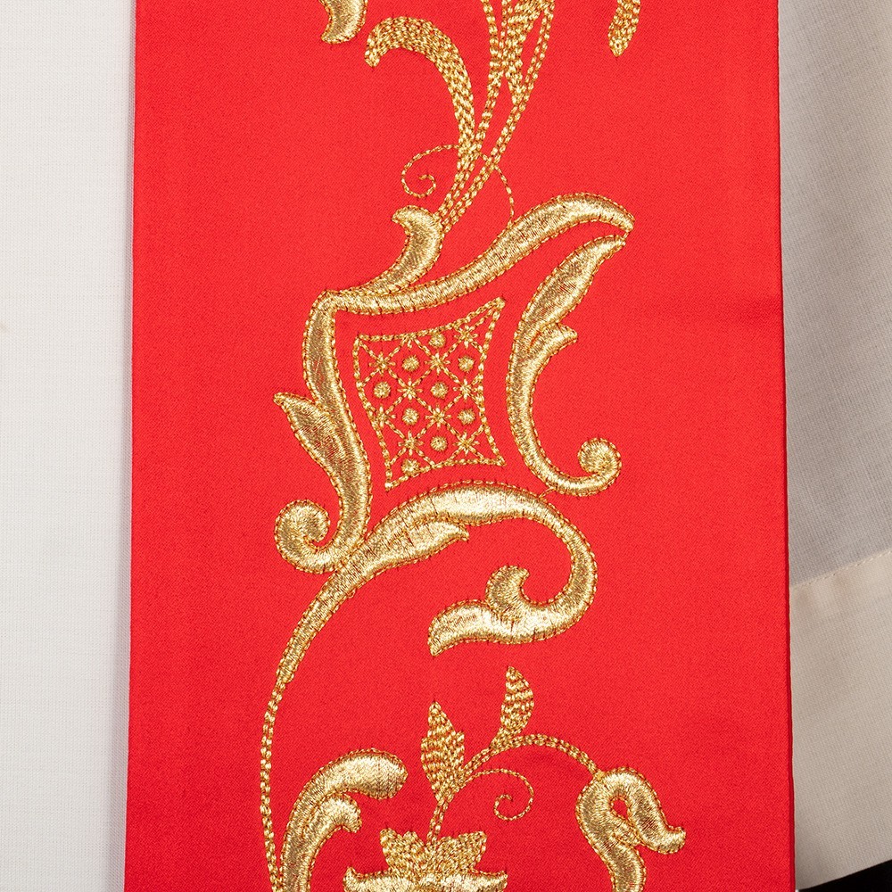 Red priest stole entirely crafted on a HANDLOOM, ensuring Italian artisanal quality and tradition.