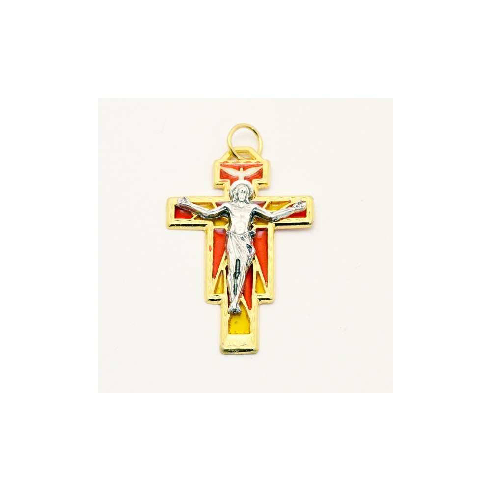 Cross in golden brass with symbol of the Holy Spirit (Dove). This pendant is 4.5 cm tall and is equipped with a cord, that is the necklace string. Ideal as a gift for kids and as a keepsake for Confirmation. Boxed.