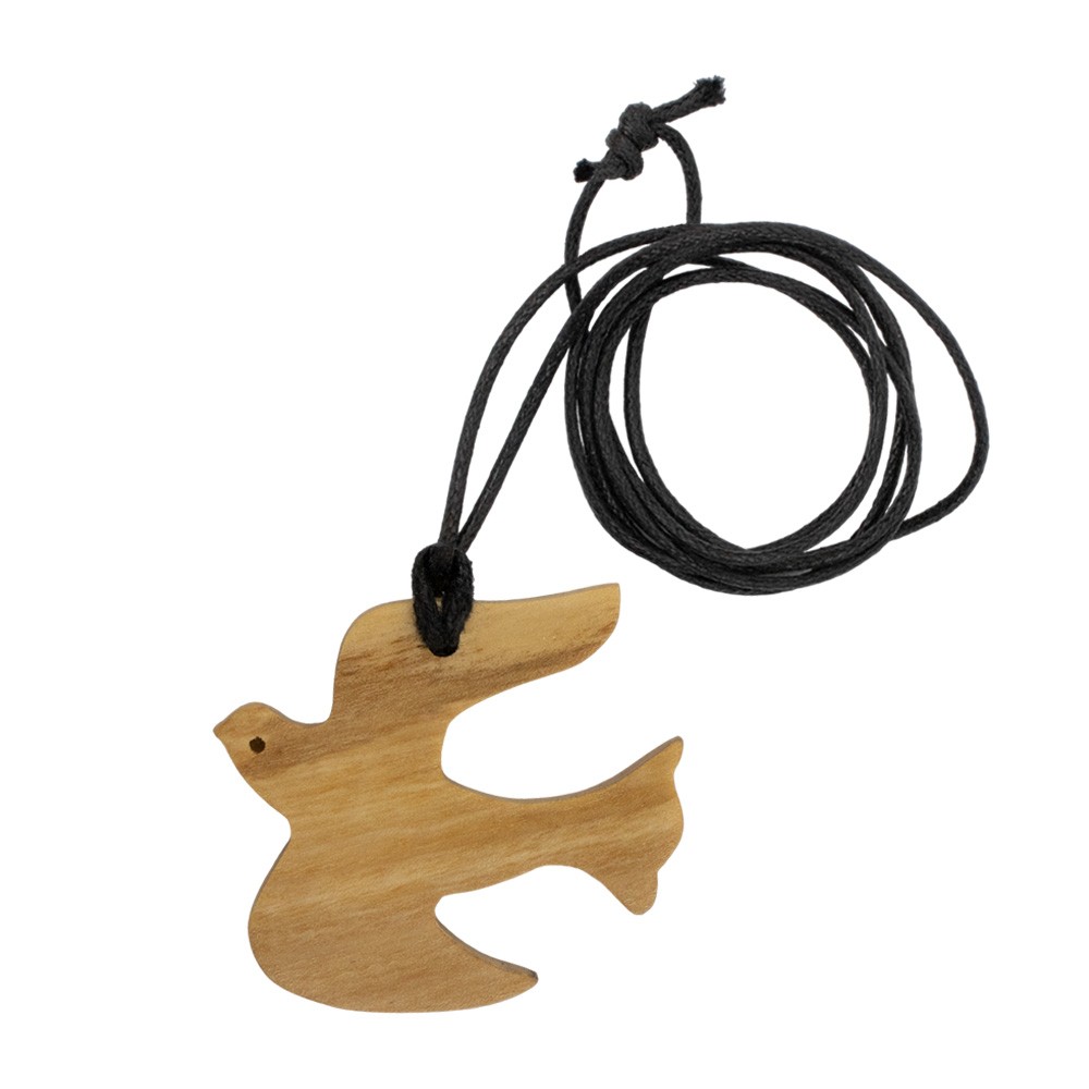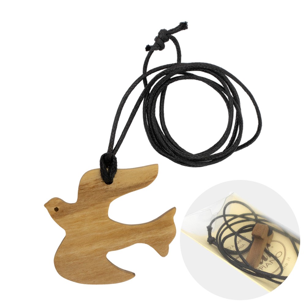 The pendant is made of olive wood and is provided with black rope. Supplied in a transparent plastic box.