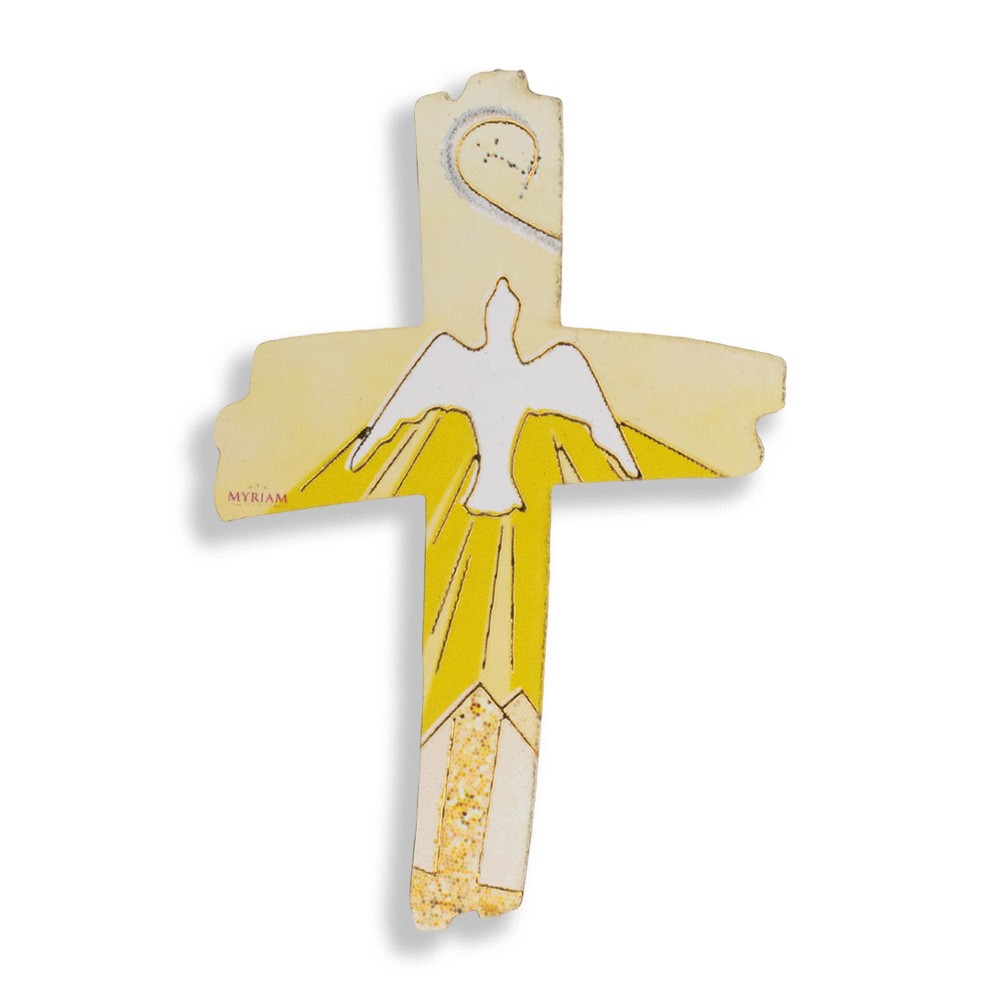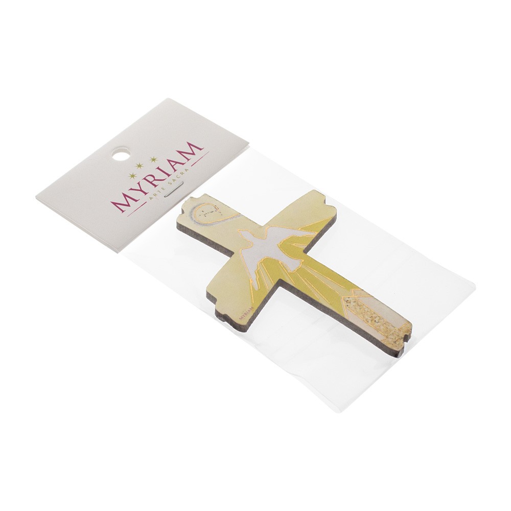 This magnet is shaped like a small stylized cross with decorative dove; ideal as a favor or placeholder for Confirmation.