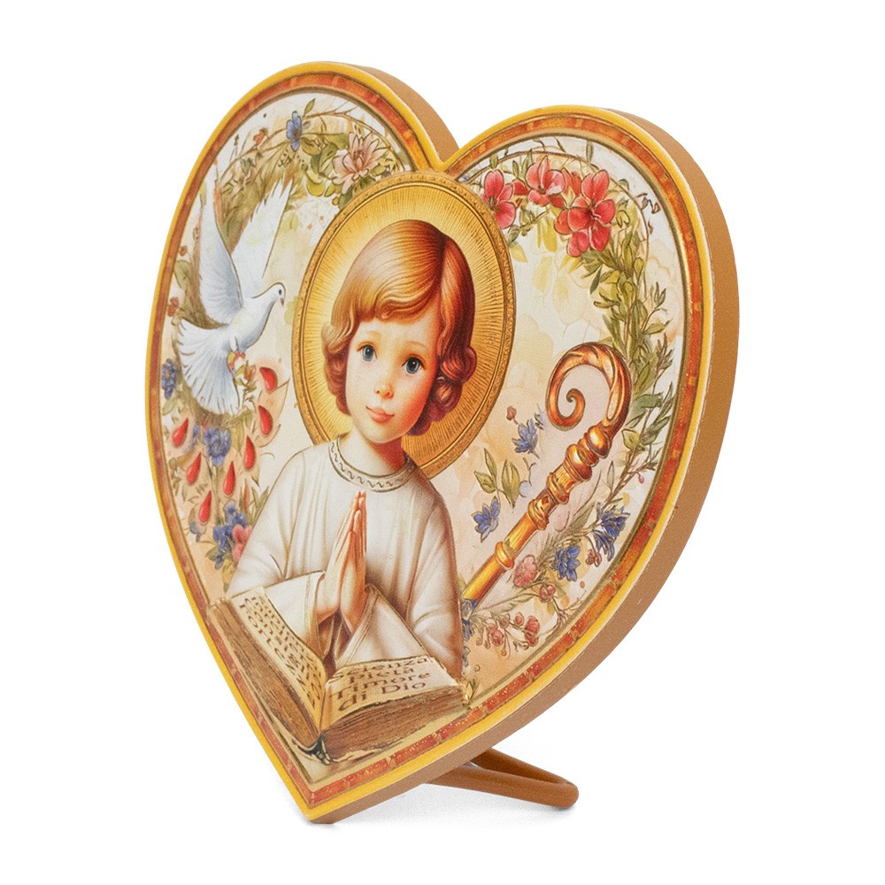 Beautiful heart-shaped plaque dedicated to the Sacrament of Confirmation, made of polymer with refined embossed details.