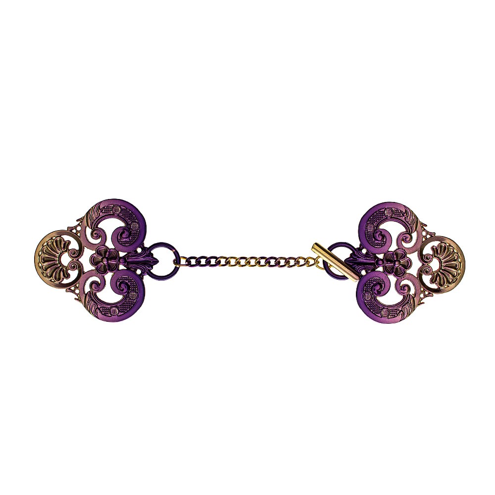 Entirely made of metal in golden and purple finish, supplied with chain.