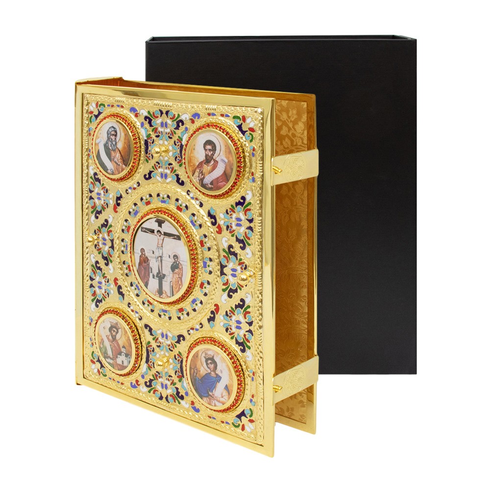 Lectionary slipcase with Evangelists and Christ Crucified.