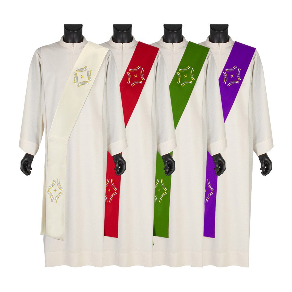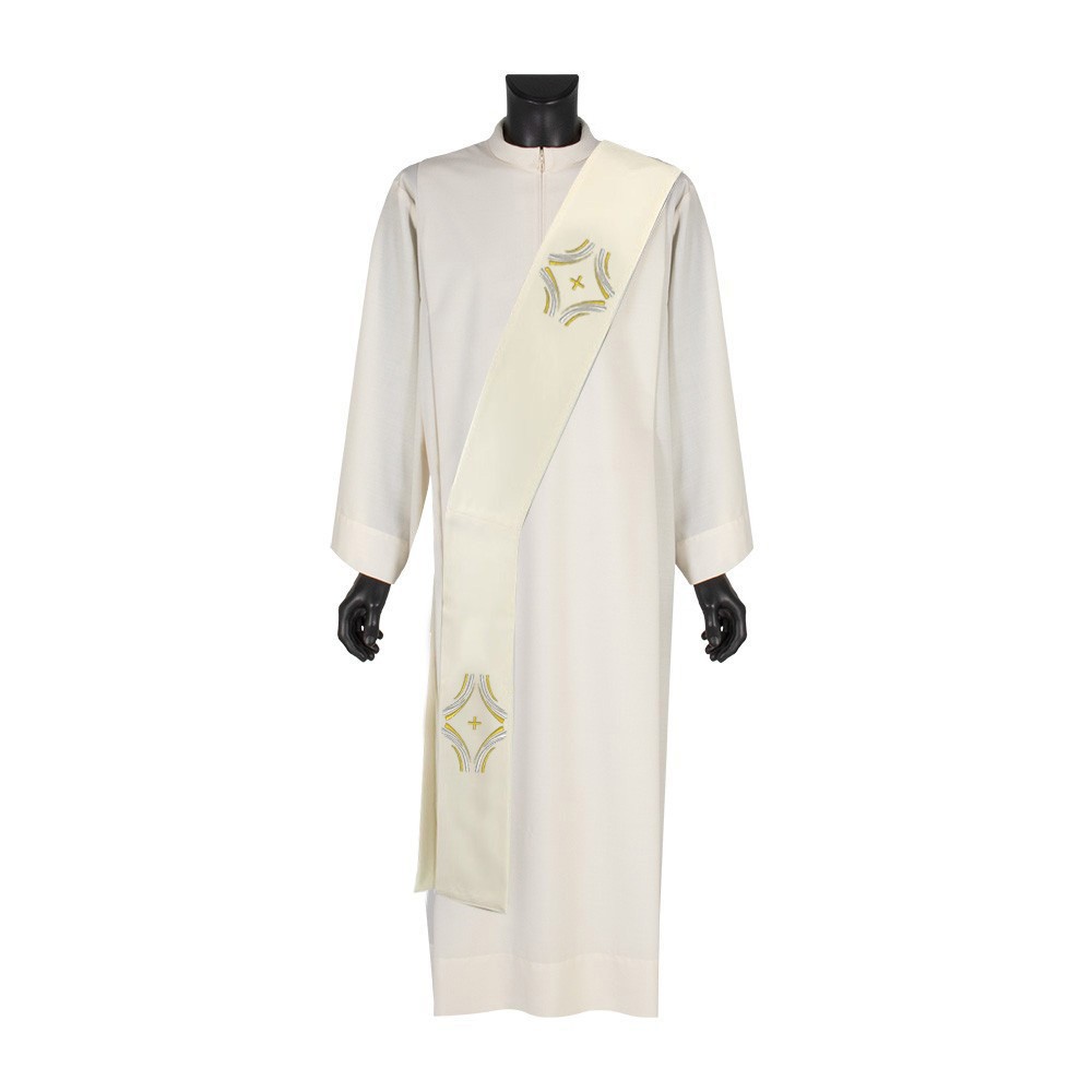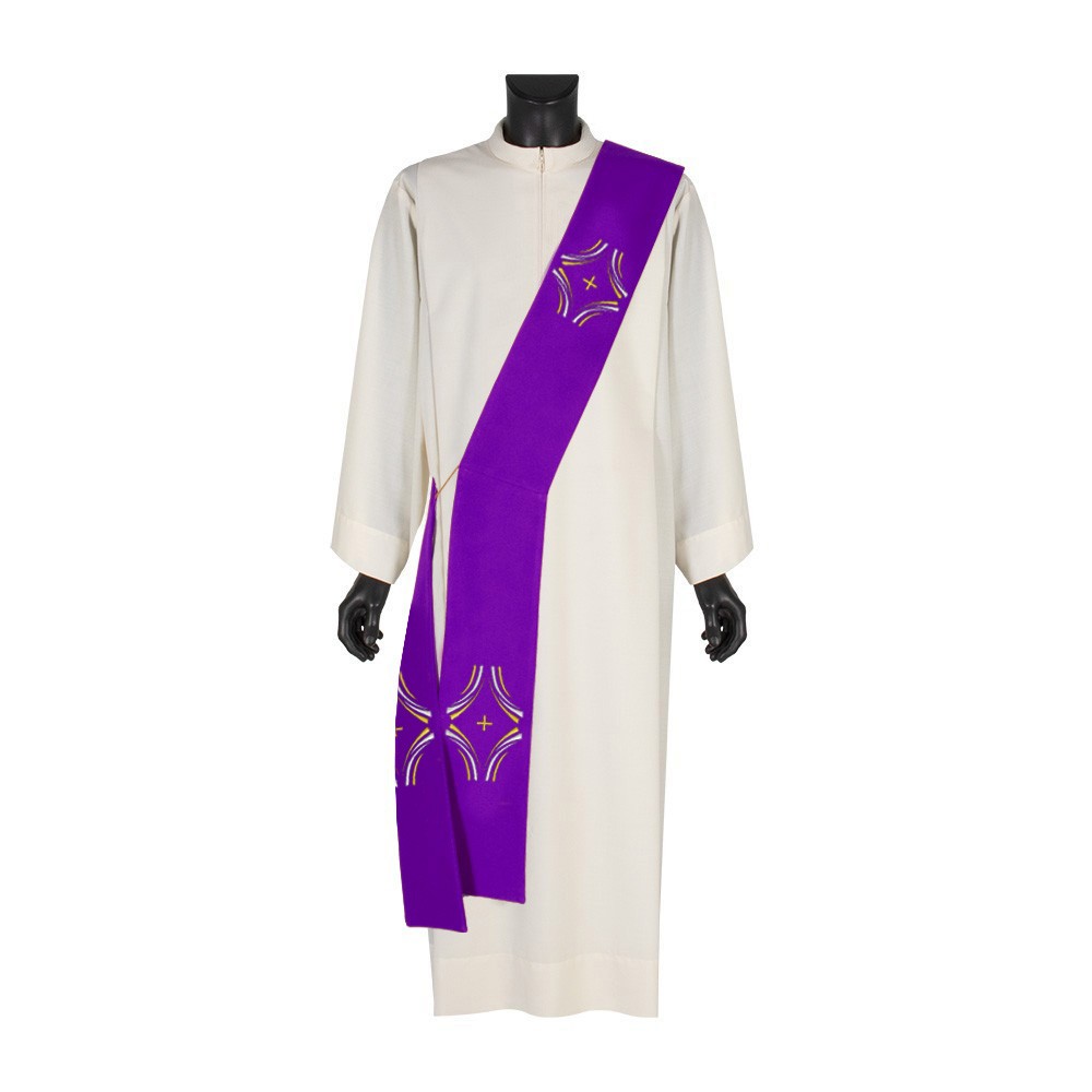 Deacon stole in polyester with embroidery. This stole features a double-sided cross embroidery. Elegant vestment of excellent quality, entirely made by an Italian craft company.