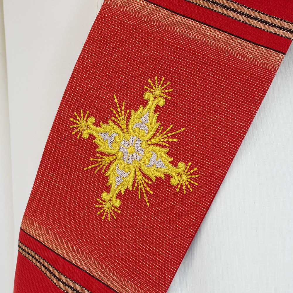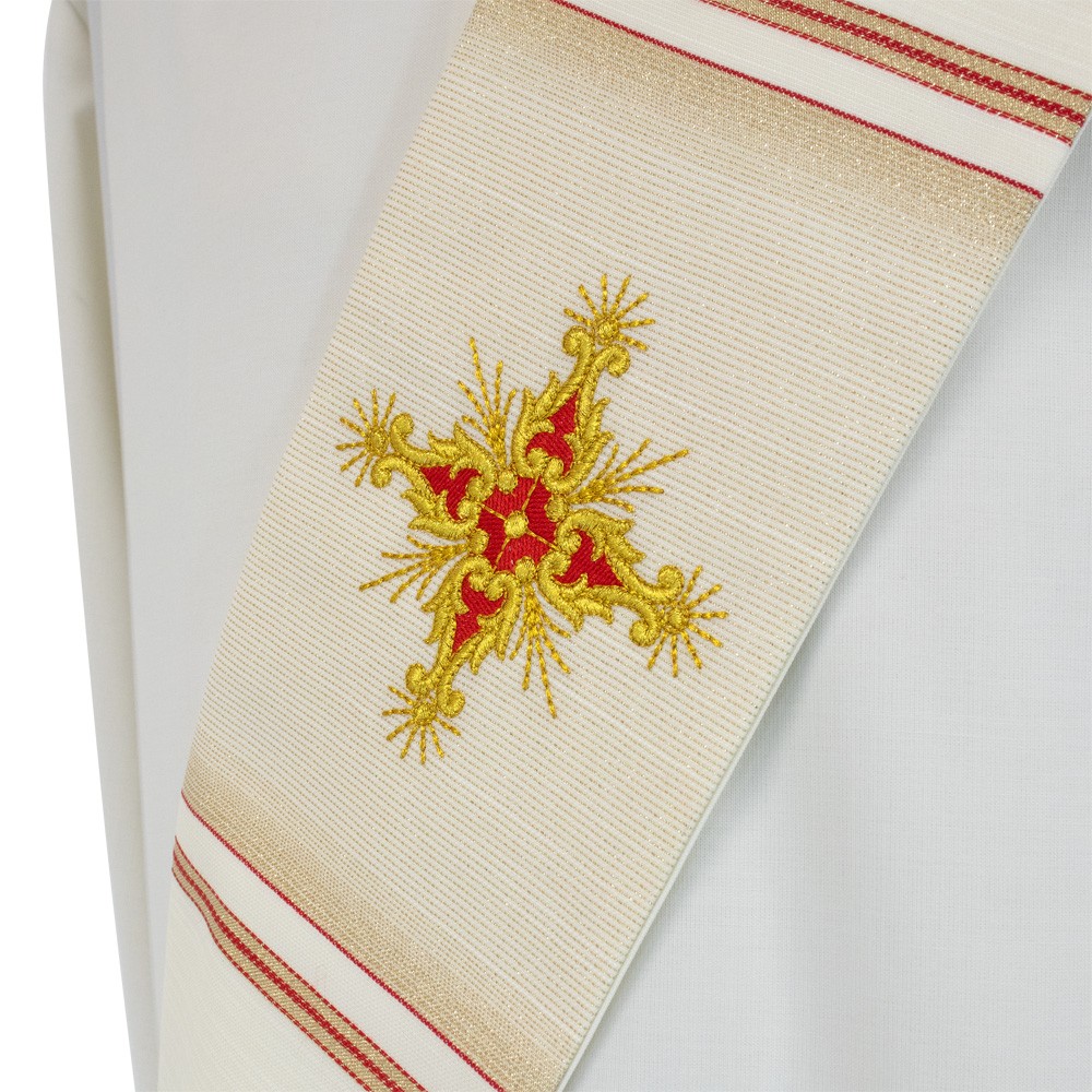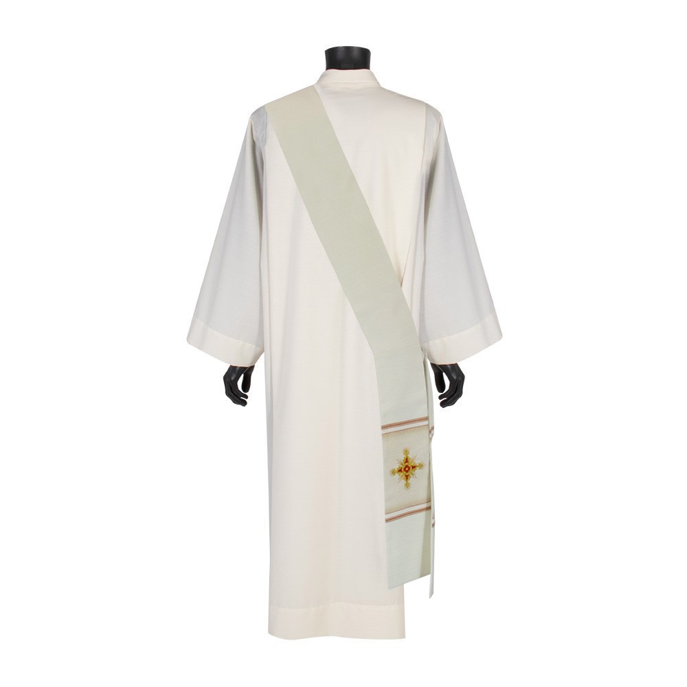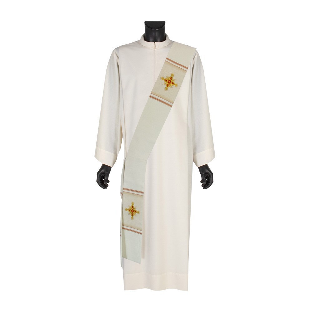 Deacon stole made of precious fabric in wool and silk. It features a fine golden embroidery on the front and back. The embroideries are made by an Italian tailor's shop using top quality machines.