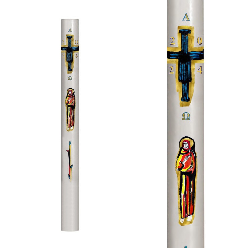This Paschal candle is available in two sizes: 130x8 cm and 120x9 cm.