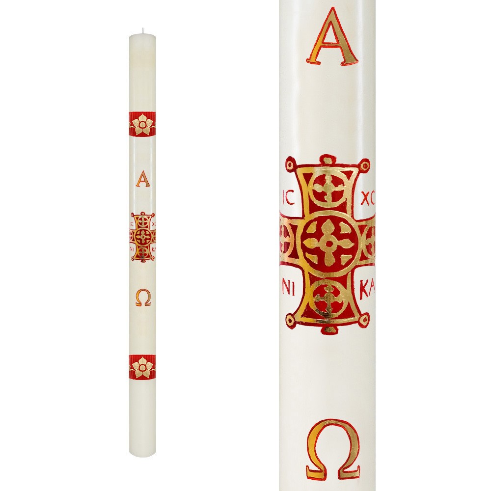 This Paschal candle is available in two sizes: 130x8 cm and 120x9 cm.
