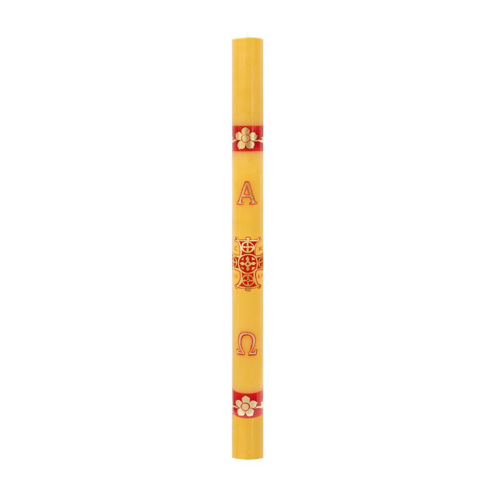Made of finest quality beeswax. This Paschal candle features ornaments depicting Eucharistic symbols. The decorations are entirely handcrafted.