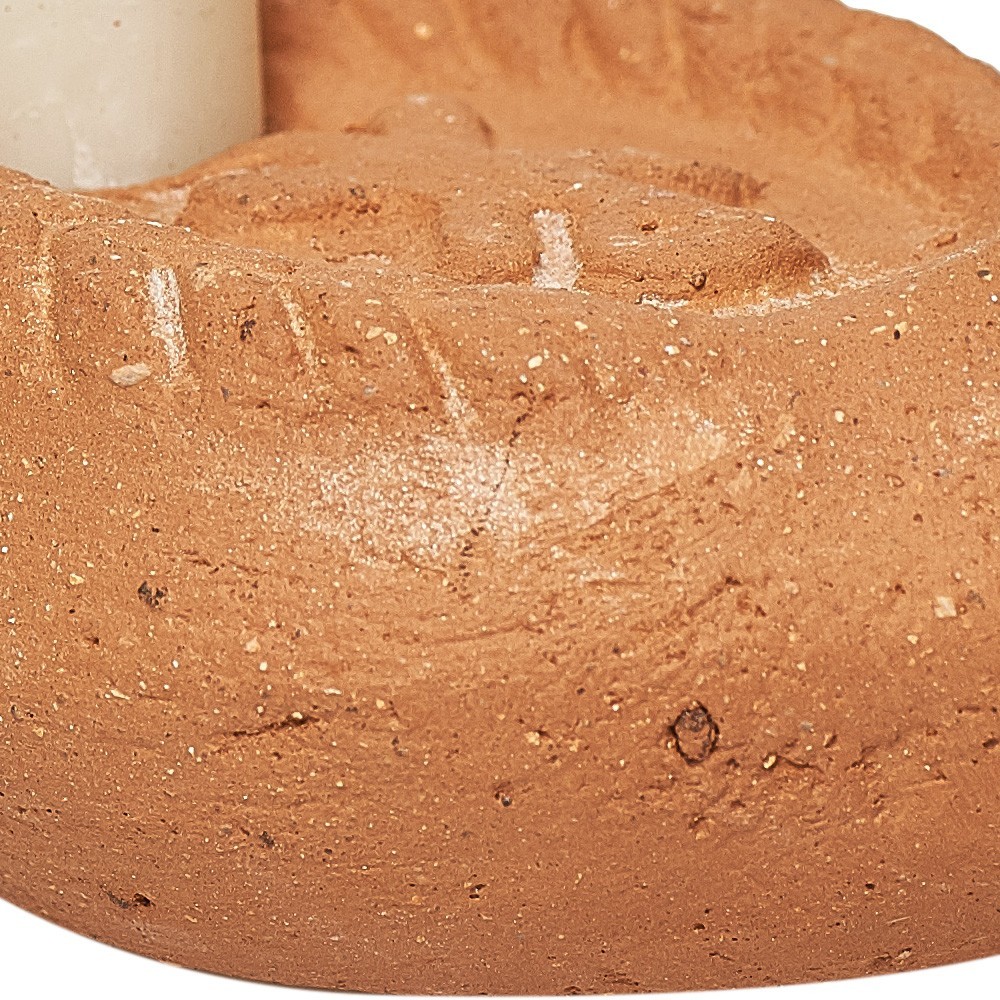 Small lamp in raw terracotta with candle. This lamp is 4 cm tall, 10.5 cm long and 6 cm wide.