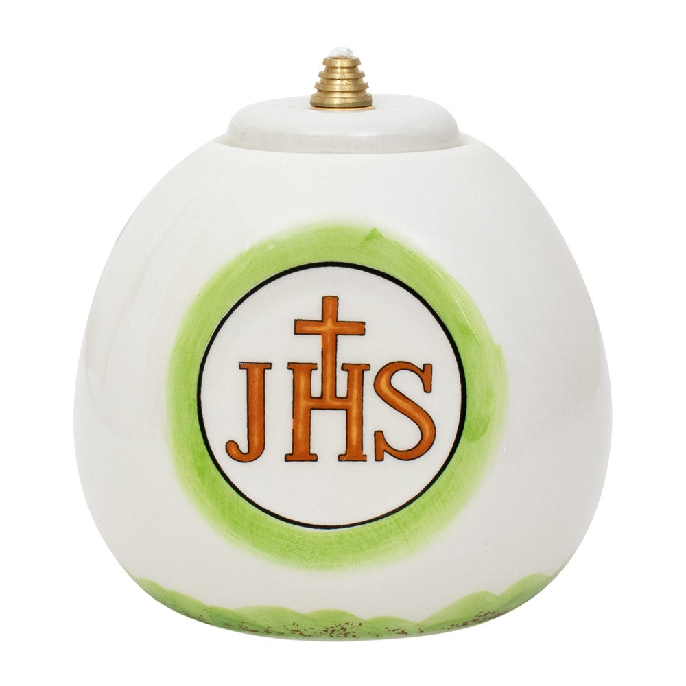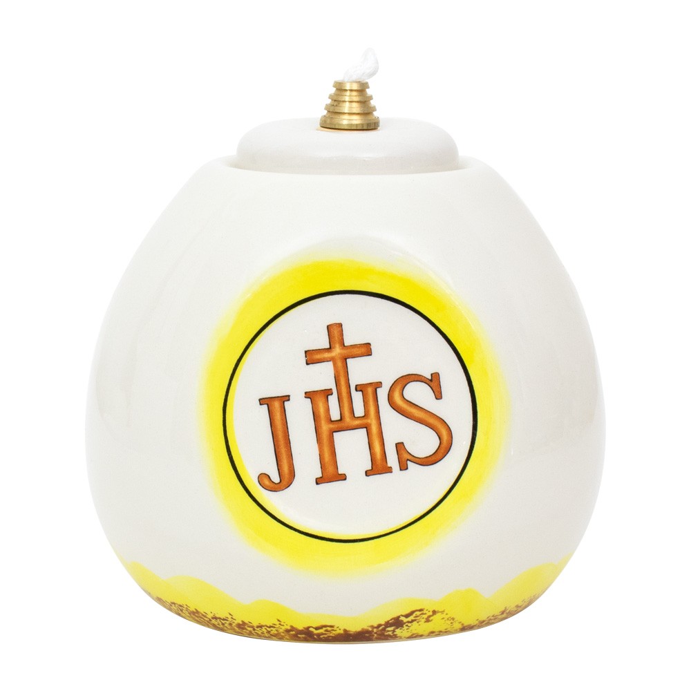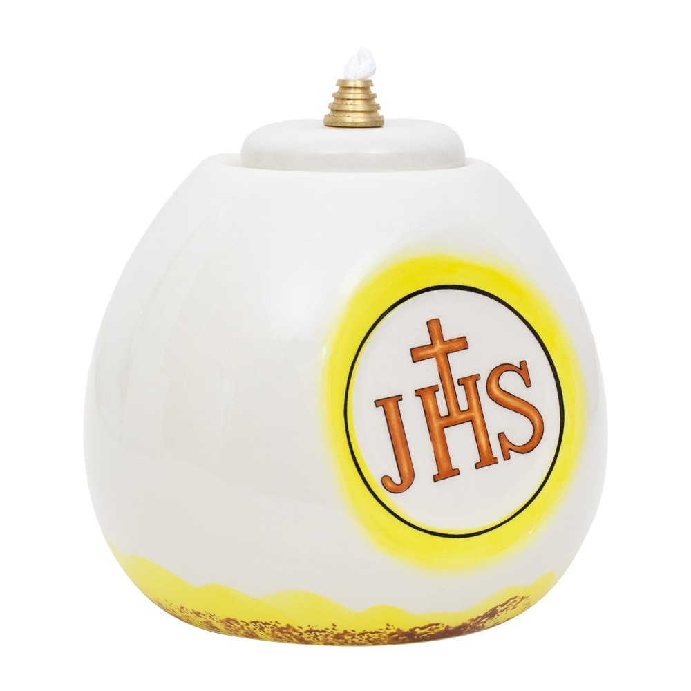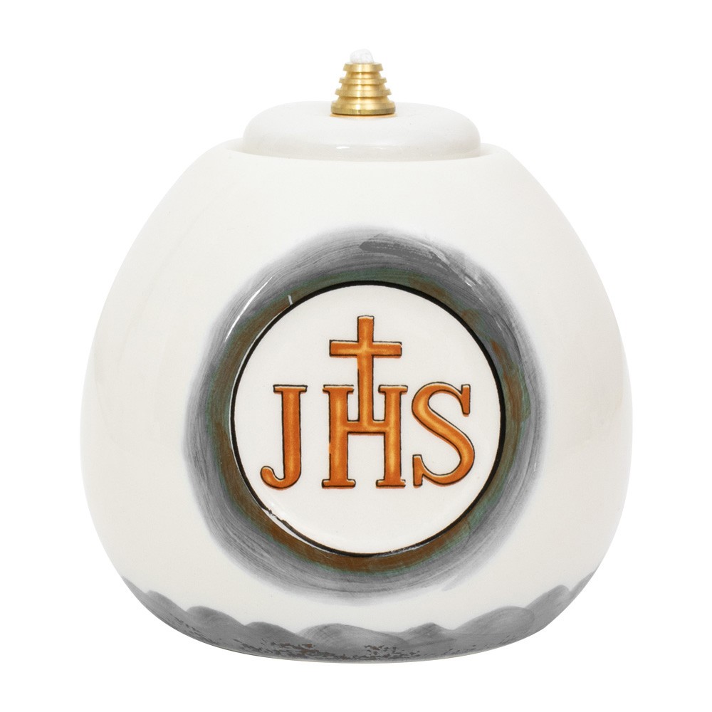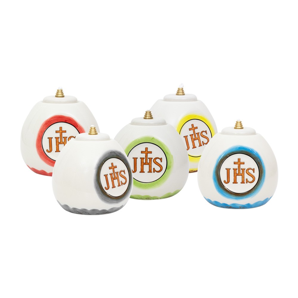 Liquid wax lamp (also oil lamp) made of colored ceramic, with JHS symbol.
