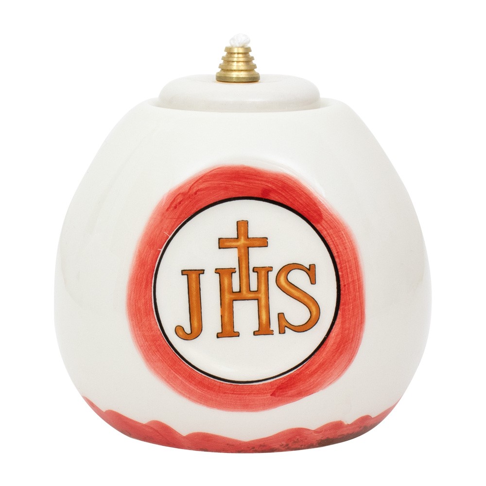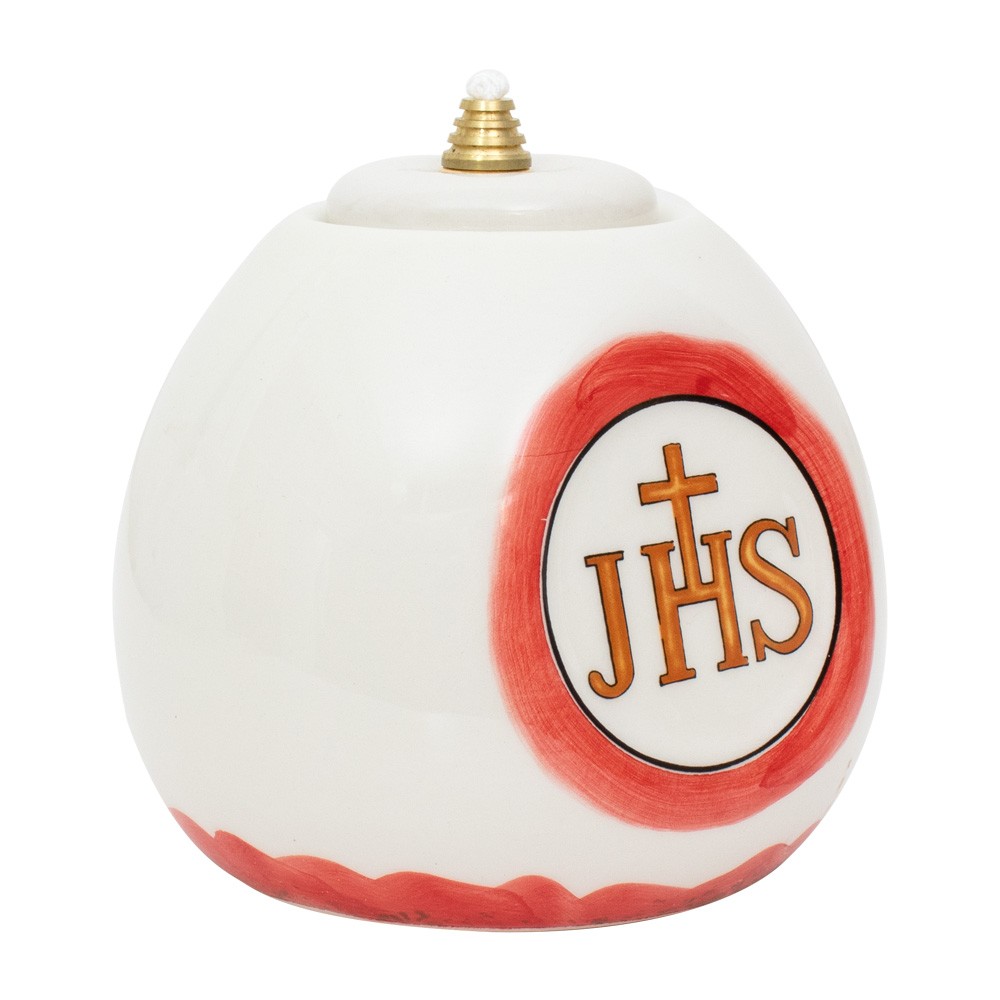 This lamp for liturgical use is complete with wick and golden wick holder.