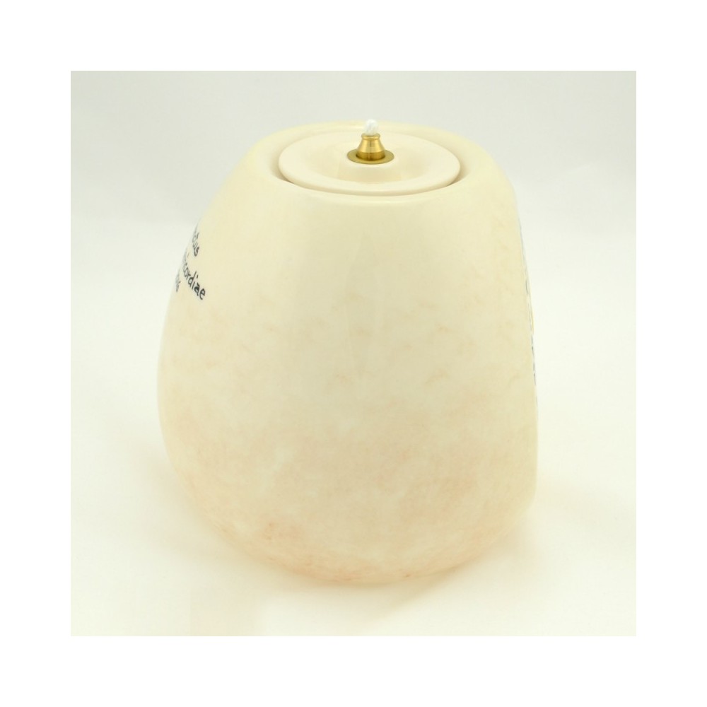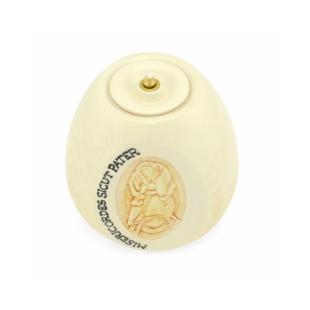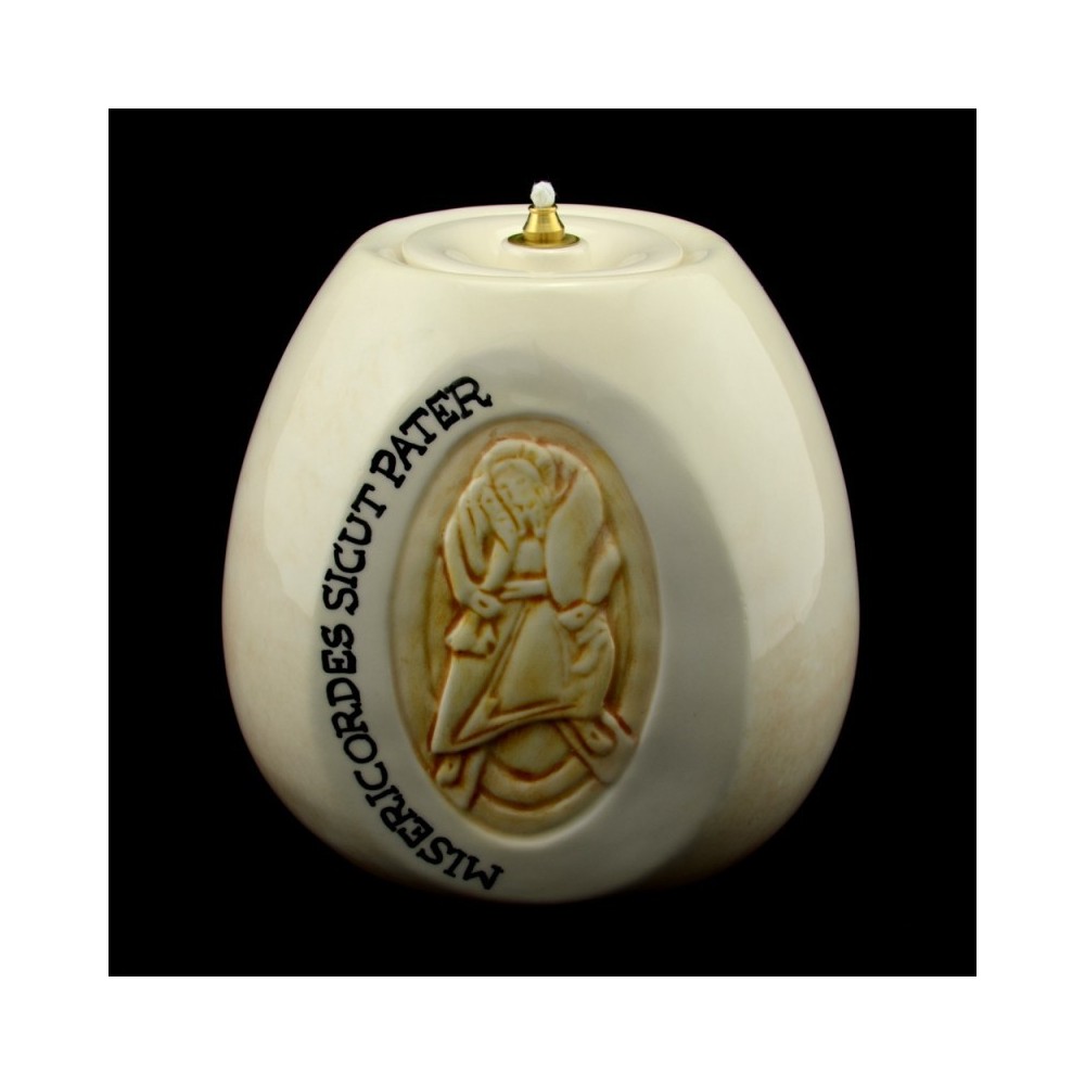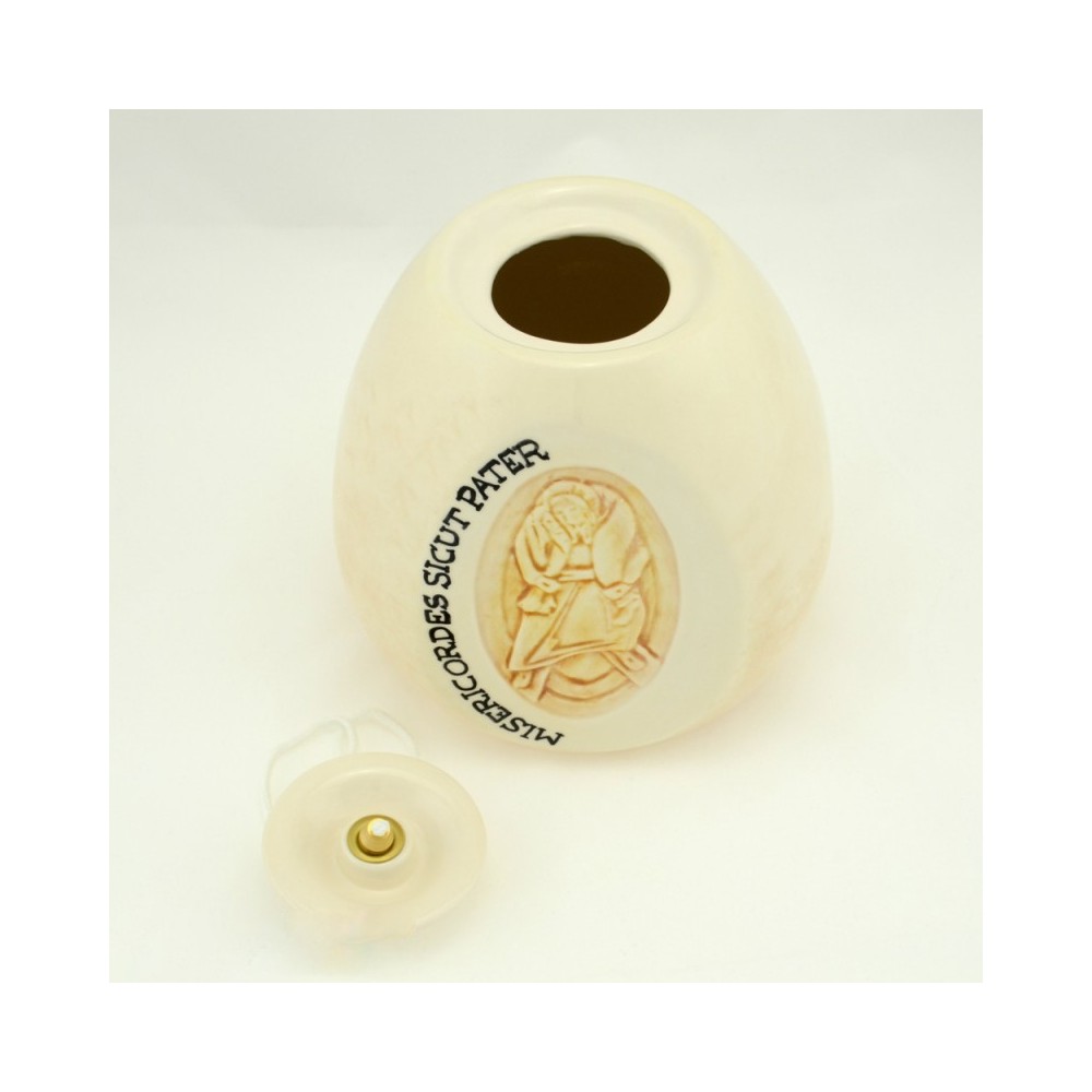 Suitable for liquid wax. It features the embossed logo of the Jubilee of Mercy. Complete with golden brass wick. This product is entirely made in Italy.