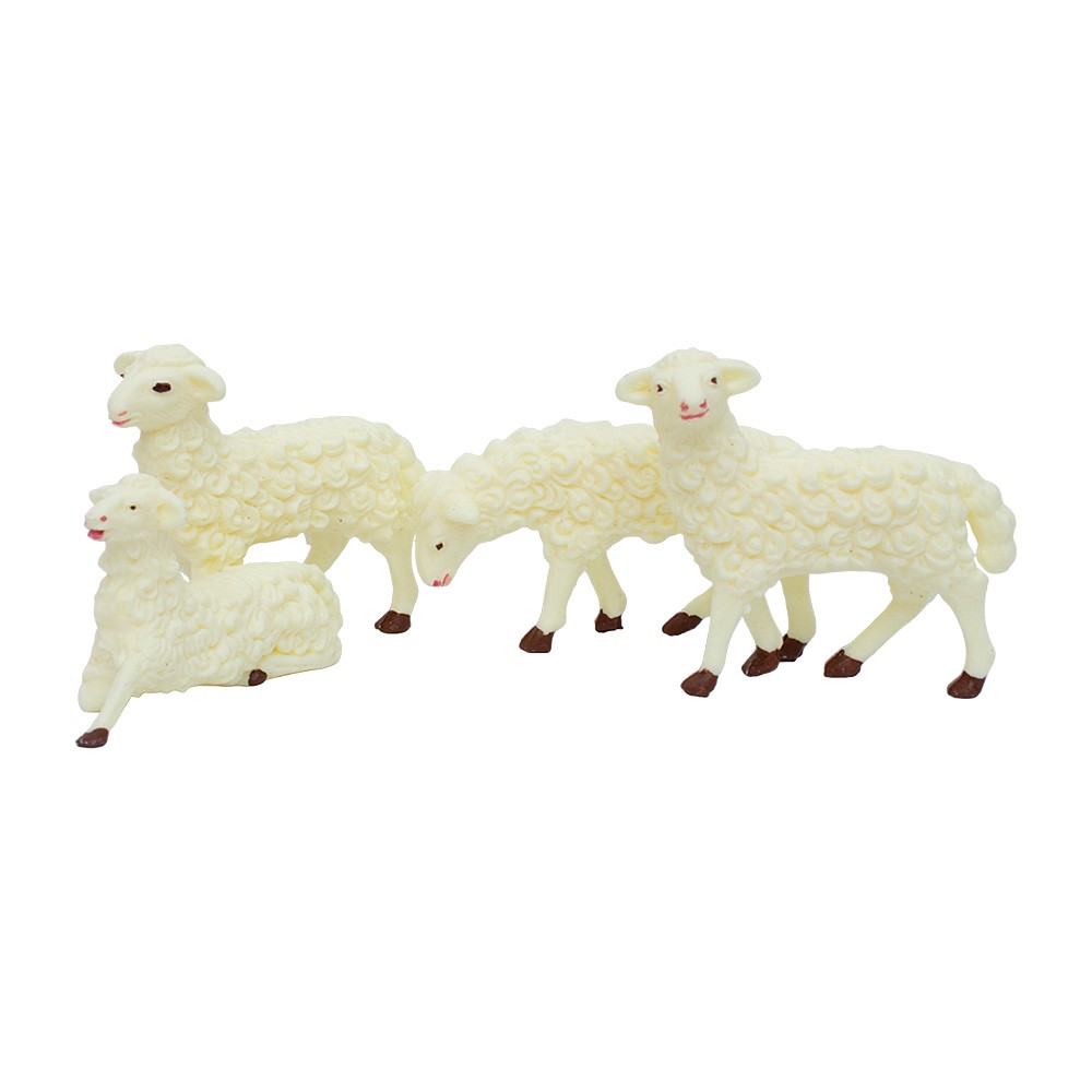 Set of 4 assorted sheep (3 standing and 1 sitting) made of PVC and entirely handpainted.