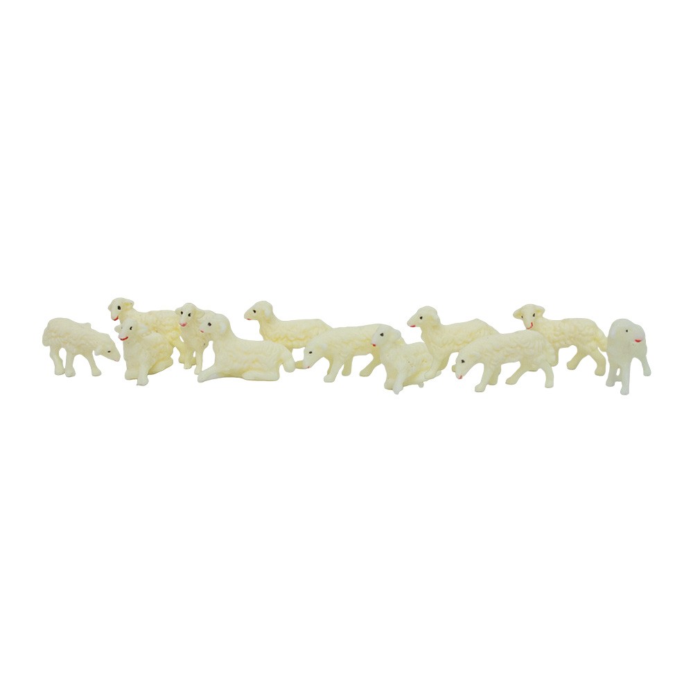 Complete set of 12 sheep (assorted models) suitable for Nativity scenes of 4 cm height.
