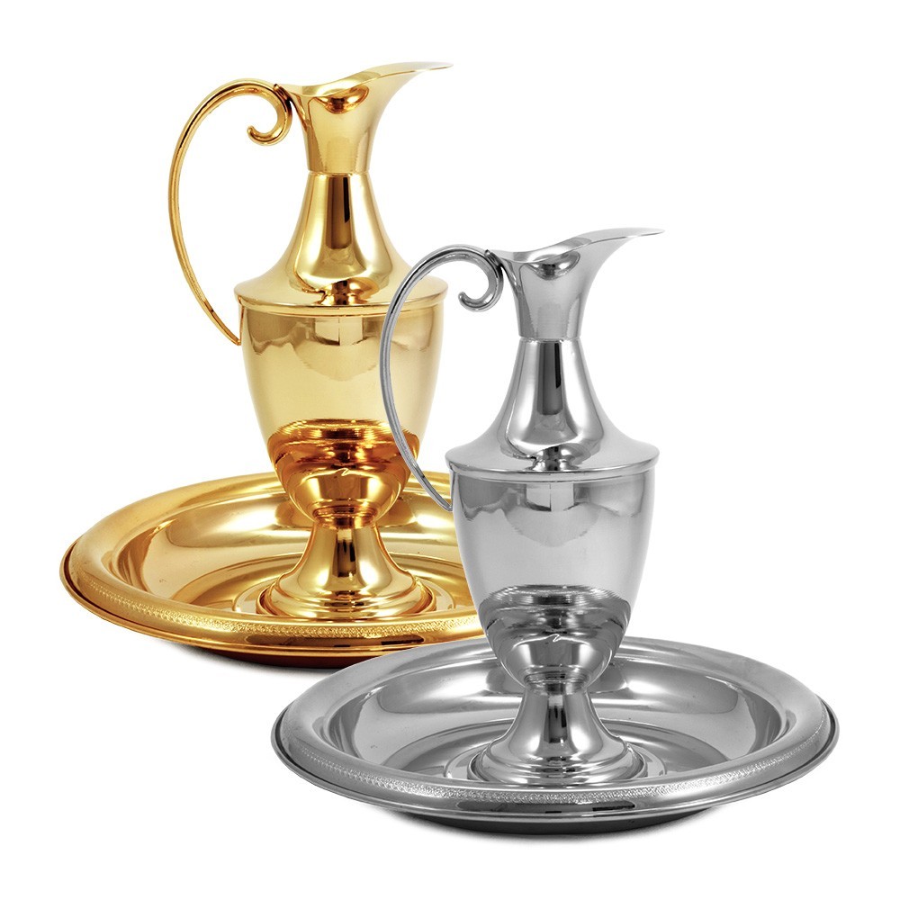 Set with ewer and basin made of 24k brass for the hand washing ritual.