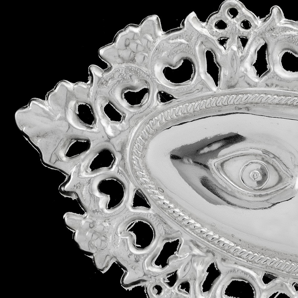 This ex voto depicts a pair of perforated eyes (size 13x8 cm) and is available in the following materials:
