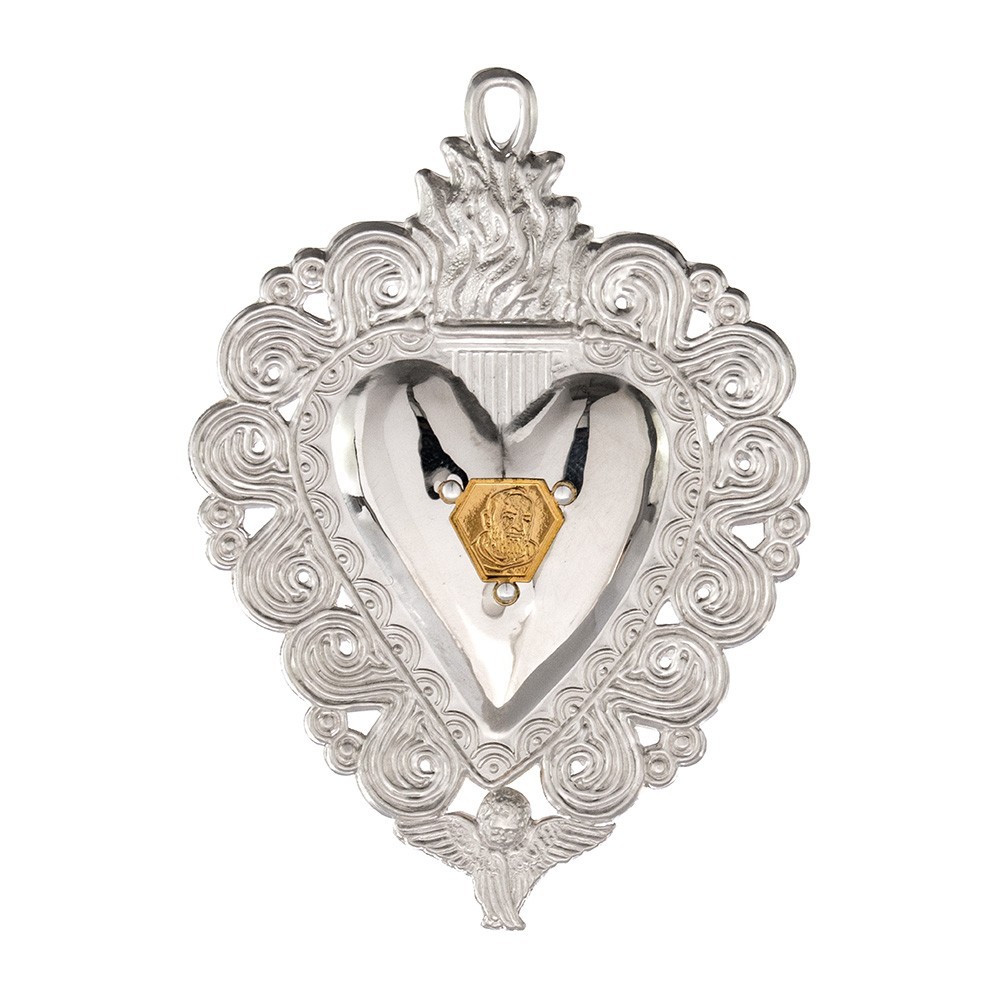 Ex-voto heart in sterling silver with image of Father Pio. Premium quality product, entirely made in Italy. It comes with a box.