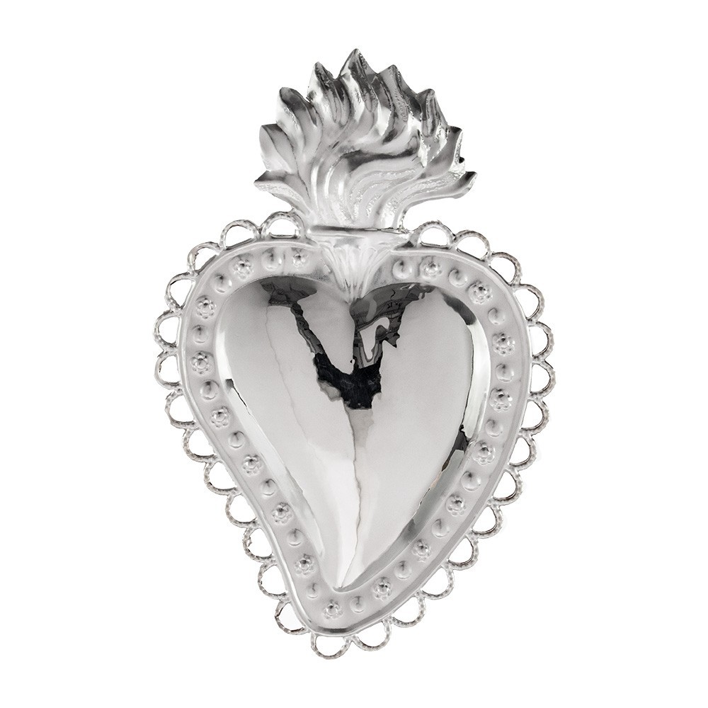 Votive heart in sterling silver, size 17x13.5 cm.