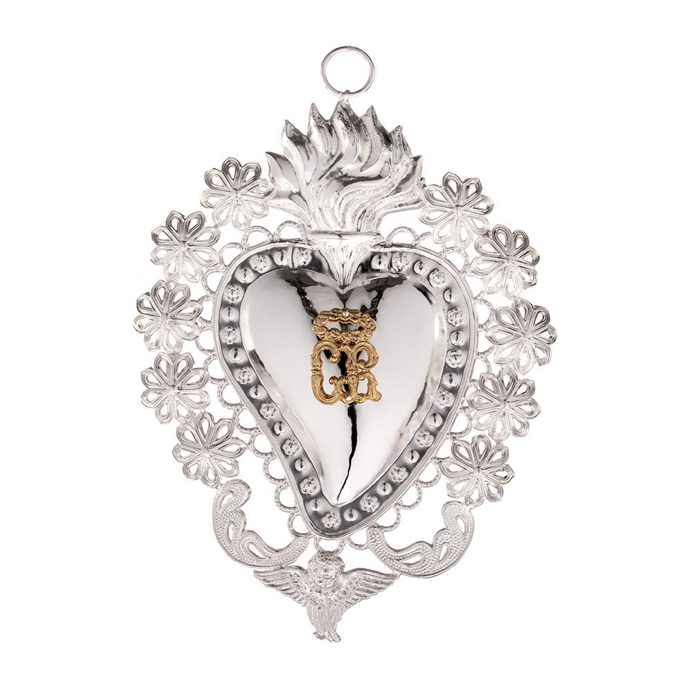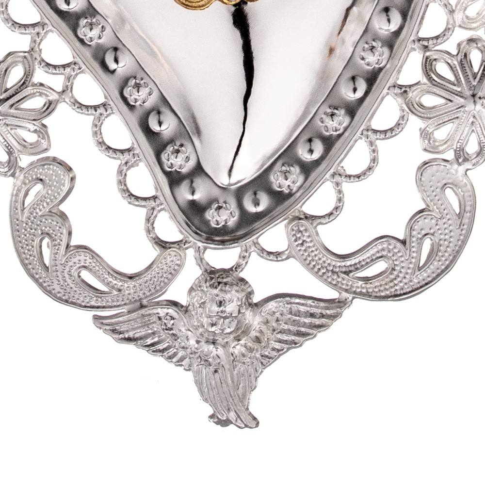 Ex-voto in metal with decorated heart.