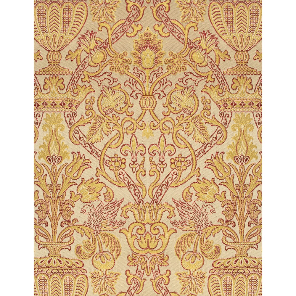 Brocade fabric with gold and burgundy amphora decoration, height 160 cm. Suitable for liturgical vestments.