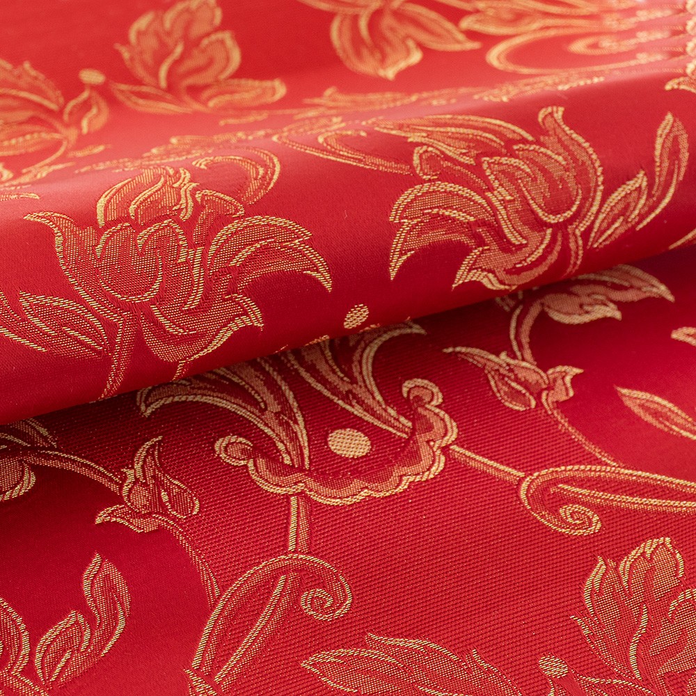 Elegant fabric in grosgrain filigree damask, suitable for ecclesiastical tailoring. Made of acetate, viscose and polyester blend.