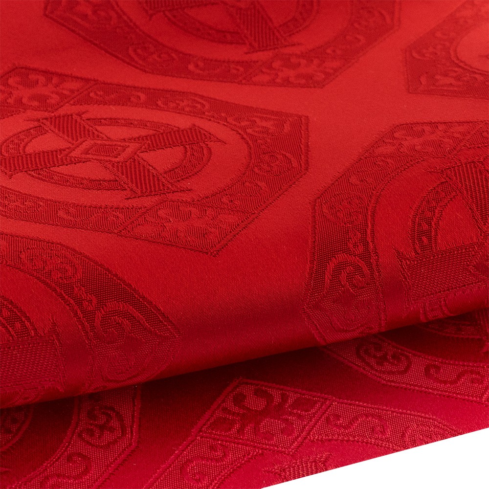 Damask liturgical fabric made of pure acetate with octagonal cross decoration.