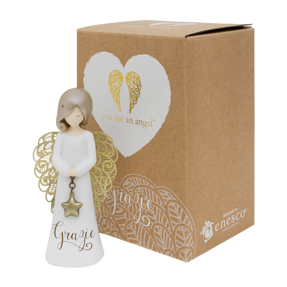 Stylized Angel with the hand-painted phrase “Grazie” from the You Are An Angel Collection.