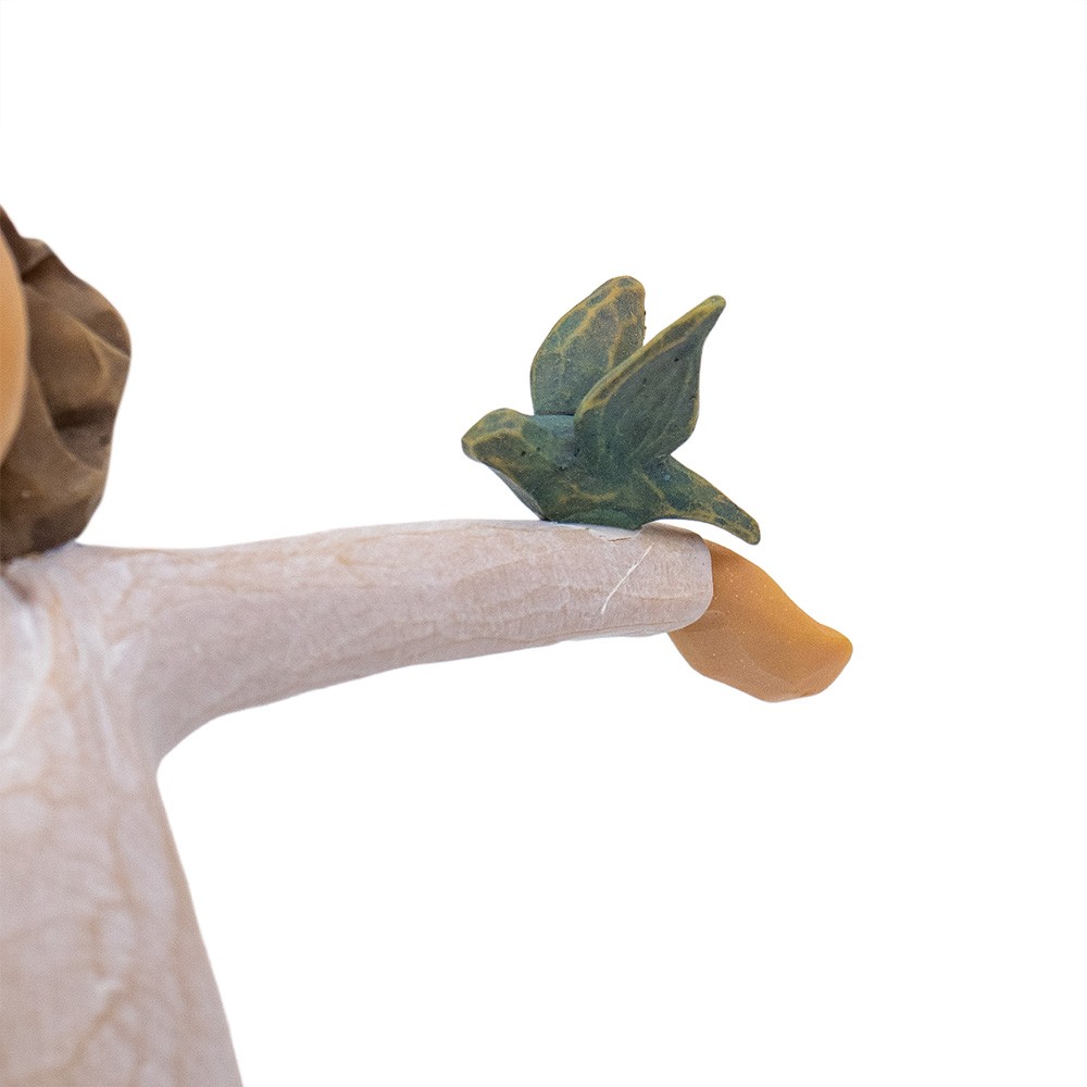 This statue is 14 cm tall and depicts a little girl with open wide arms and three birds.